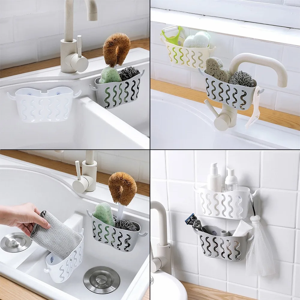 Можно повесить на кухню, смеситель для ванной комнаты, чтобы предотвратить попадание губки, мочалки, бритвы и т. д., на дне полого слива и высыхание, нелегко размножать бактерии.