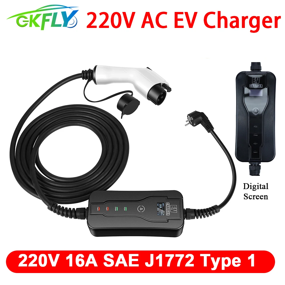 Портативное зарядное устройство для электромобилей GKFLY, 220 кВт, 5 м, тип 1 16 А, 13 а, 10 А, 8 А, регулируемая SAE J1772, в, EV зарядная станция