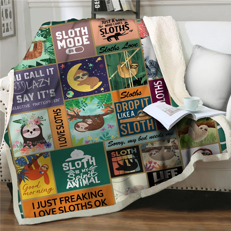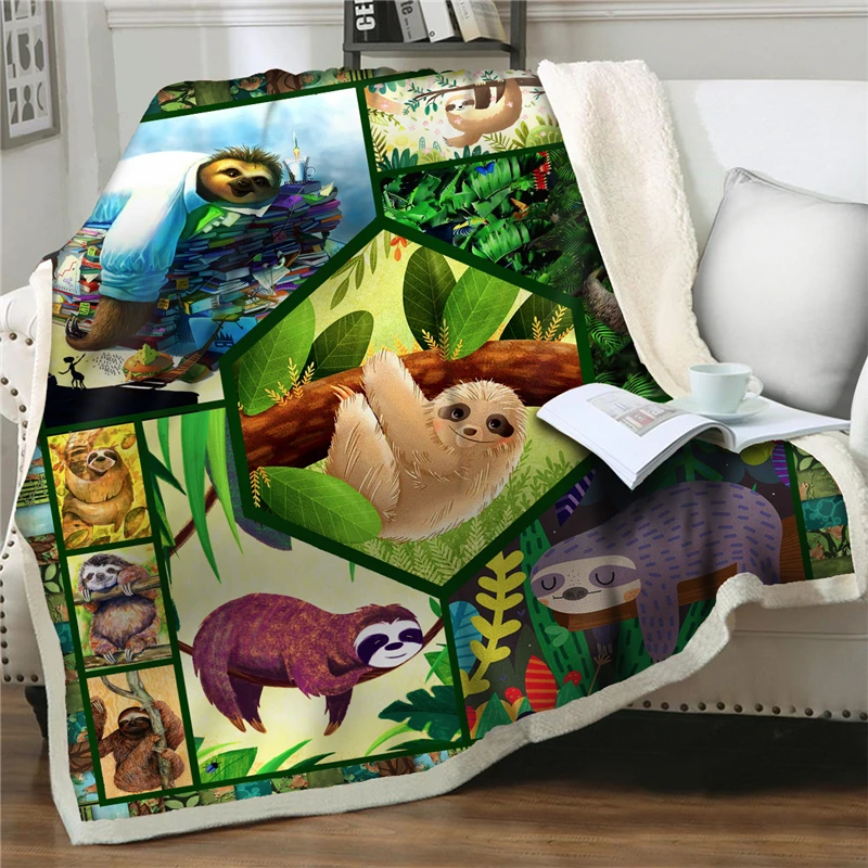 Мультфильм милый с принтом "Ленивец" подстежка на искусственном меху, Одеяло толстые теплые мягкие фланелевые Одеяло s диван постельное покрывало сна одеяла крышка домашний текстиль