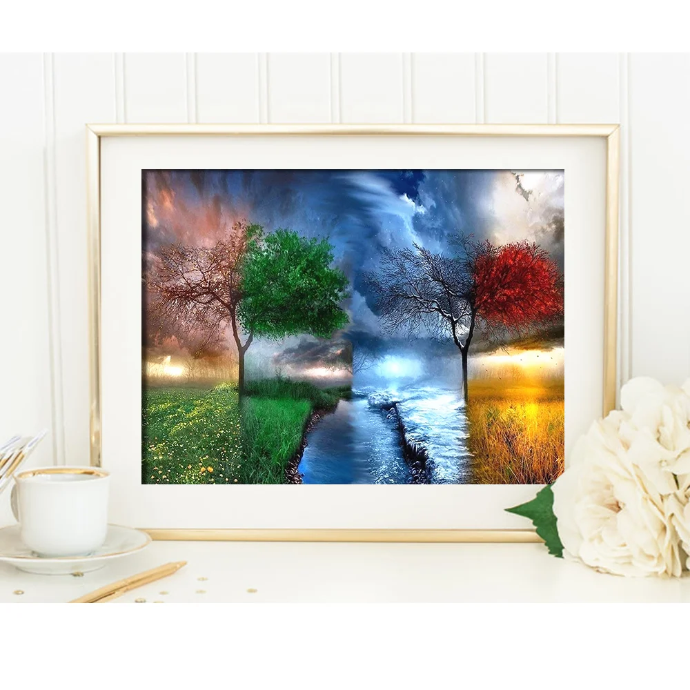 5d алмазная живопись, сезон, вышивка крестиком с деревом, полная вышивка, мозаика, пейзаж, искусство, Настенная картина, Декор, домашний подарок ручной работы