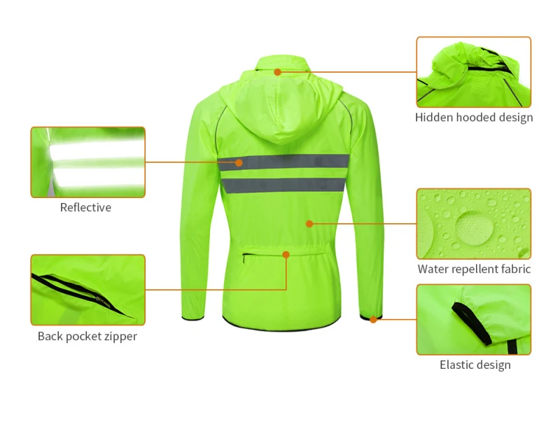 Дизайн с капюшоном; Светоотражающие полосы шириной 4 см обеспечивают безопасную езду на велосипеде и пробежку в ночное время.