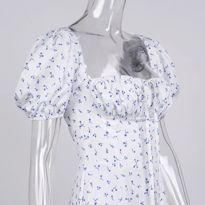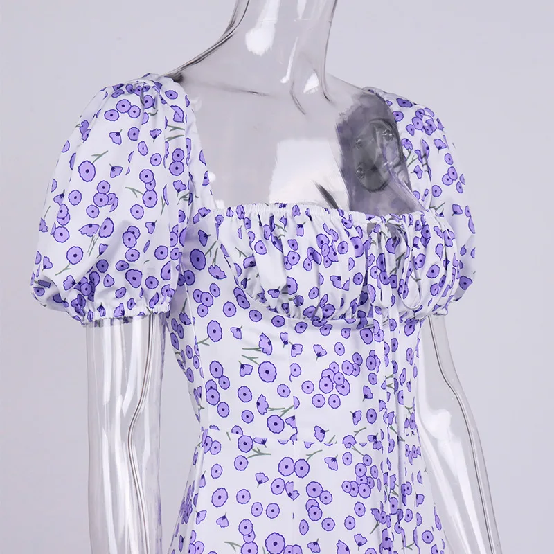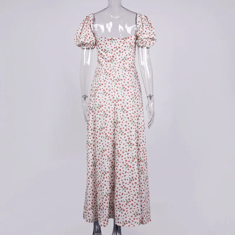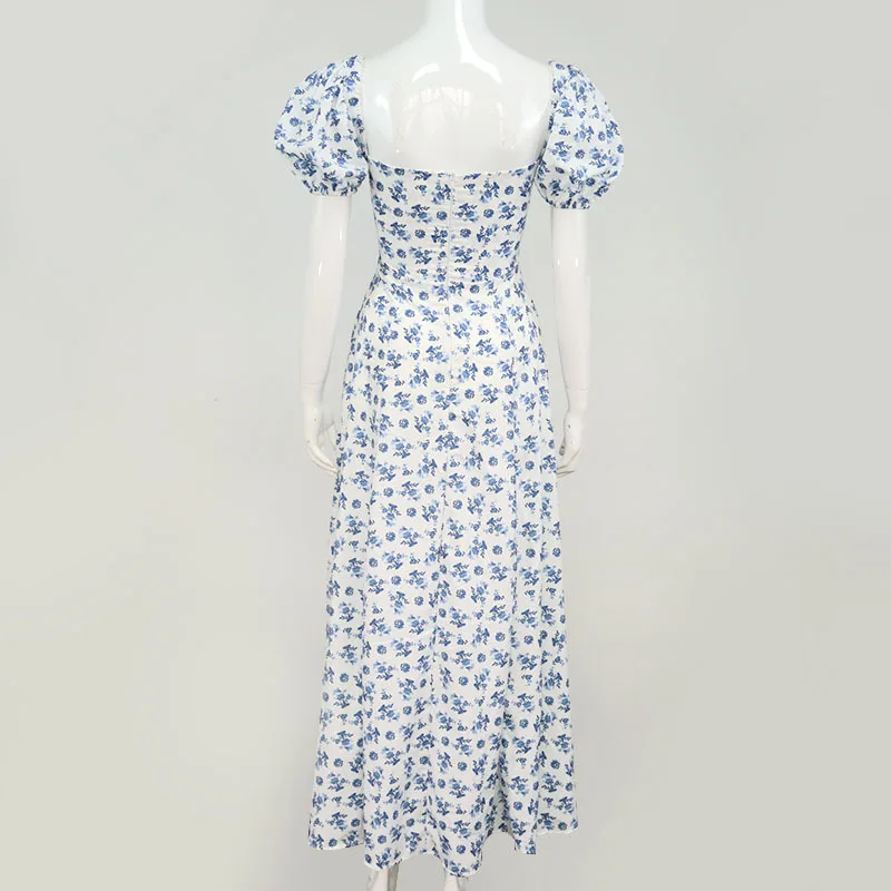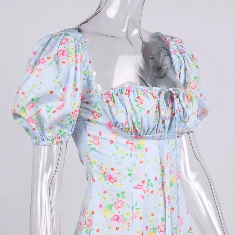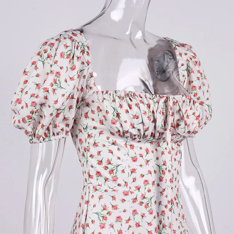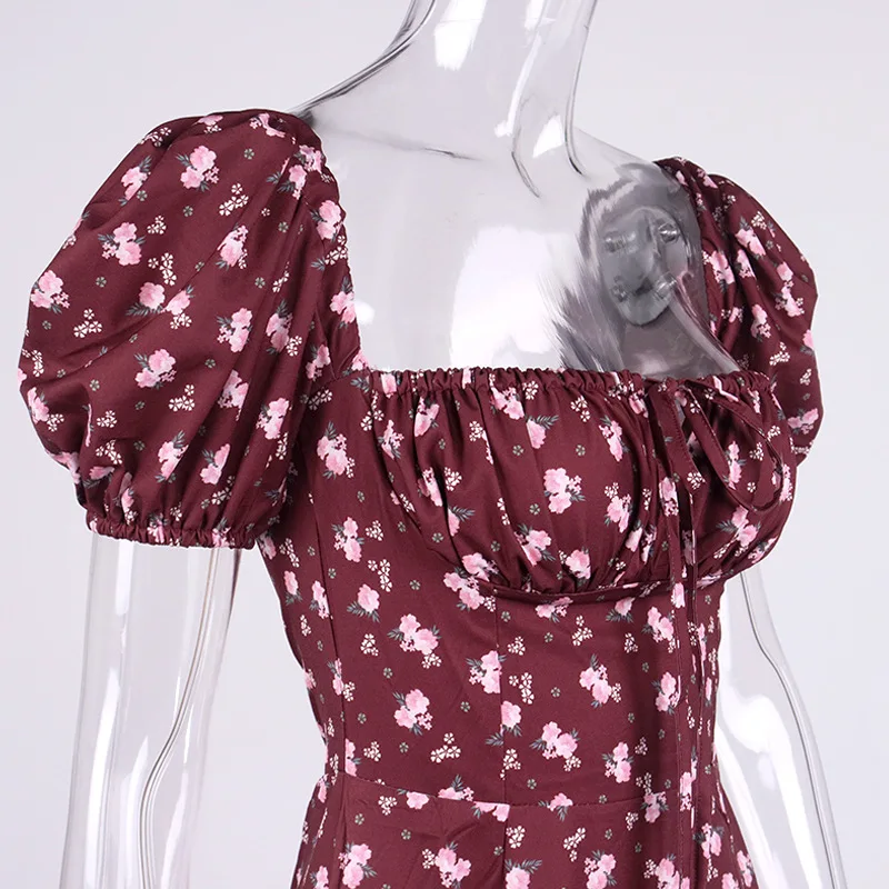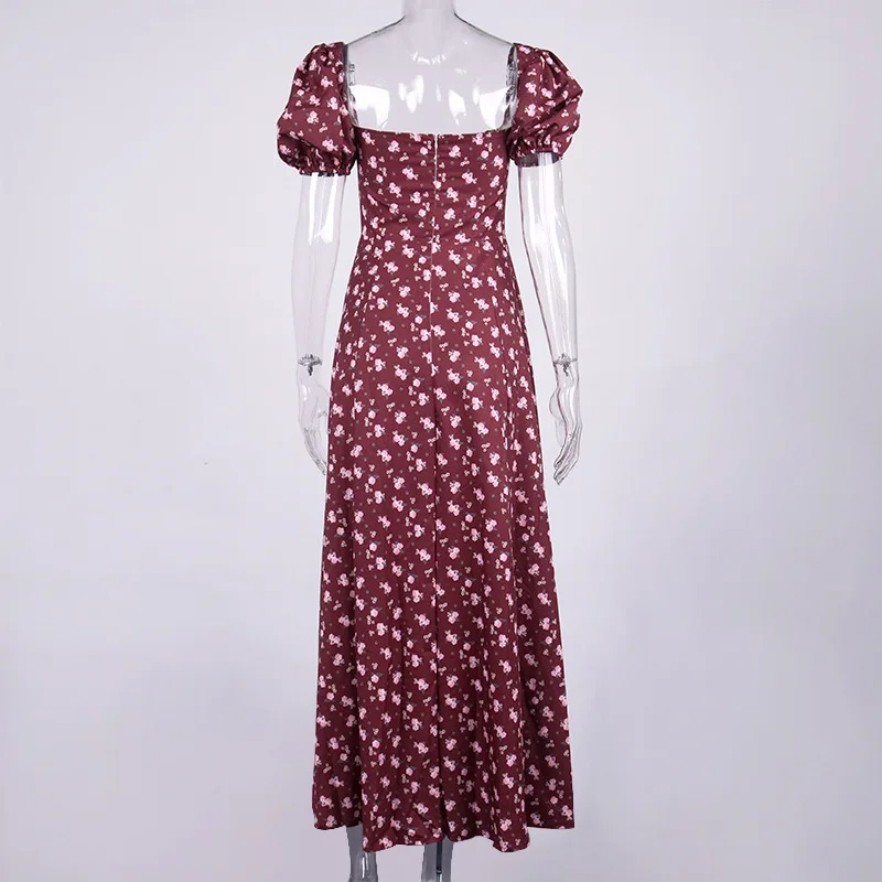 Платье-миди женское с цветочным принтом, с высоким разрезом и рукавами-фонариками, лето 2021