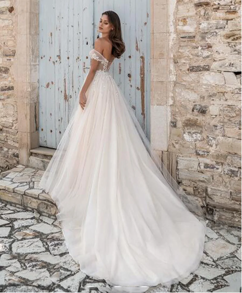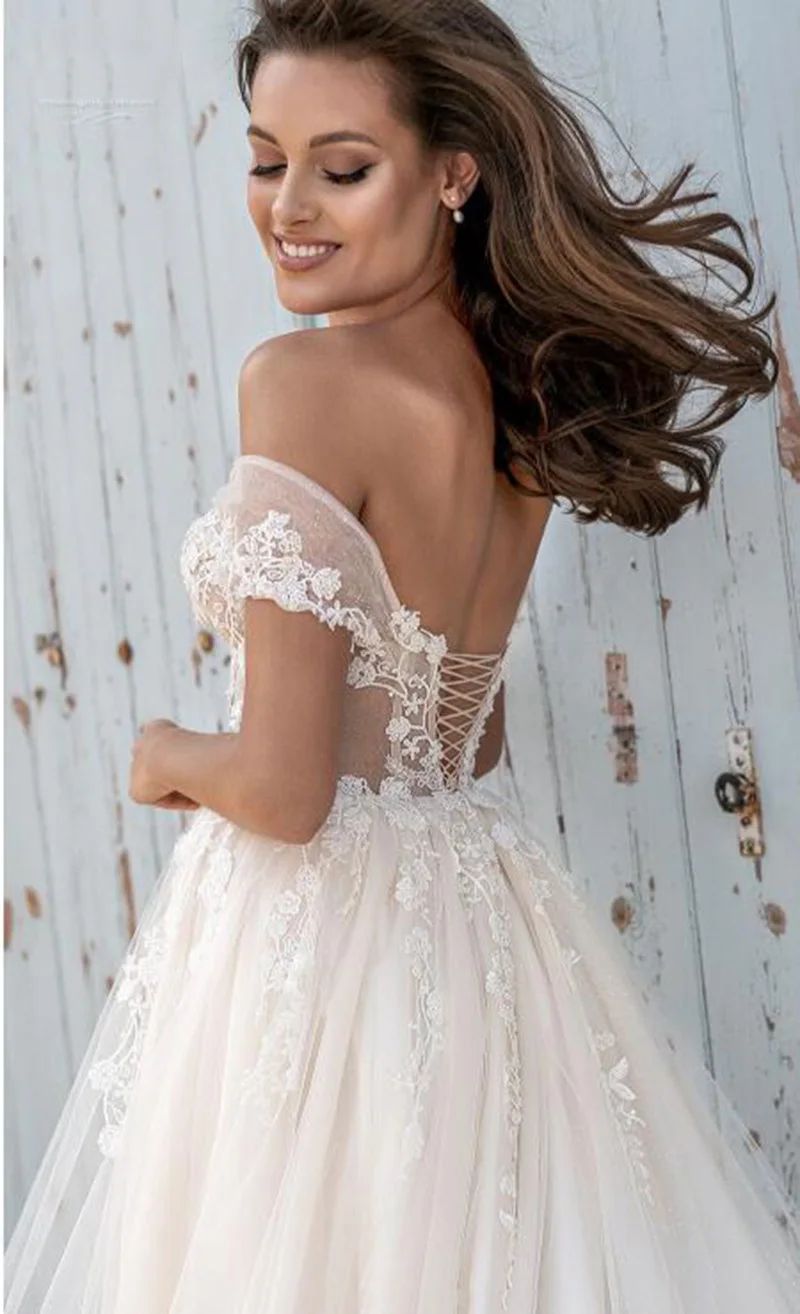 Платье свадебное кружевное с открытыми плечами и открытой спиной