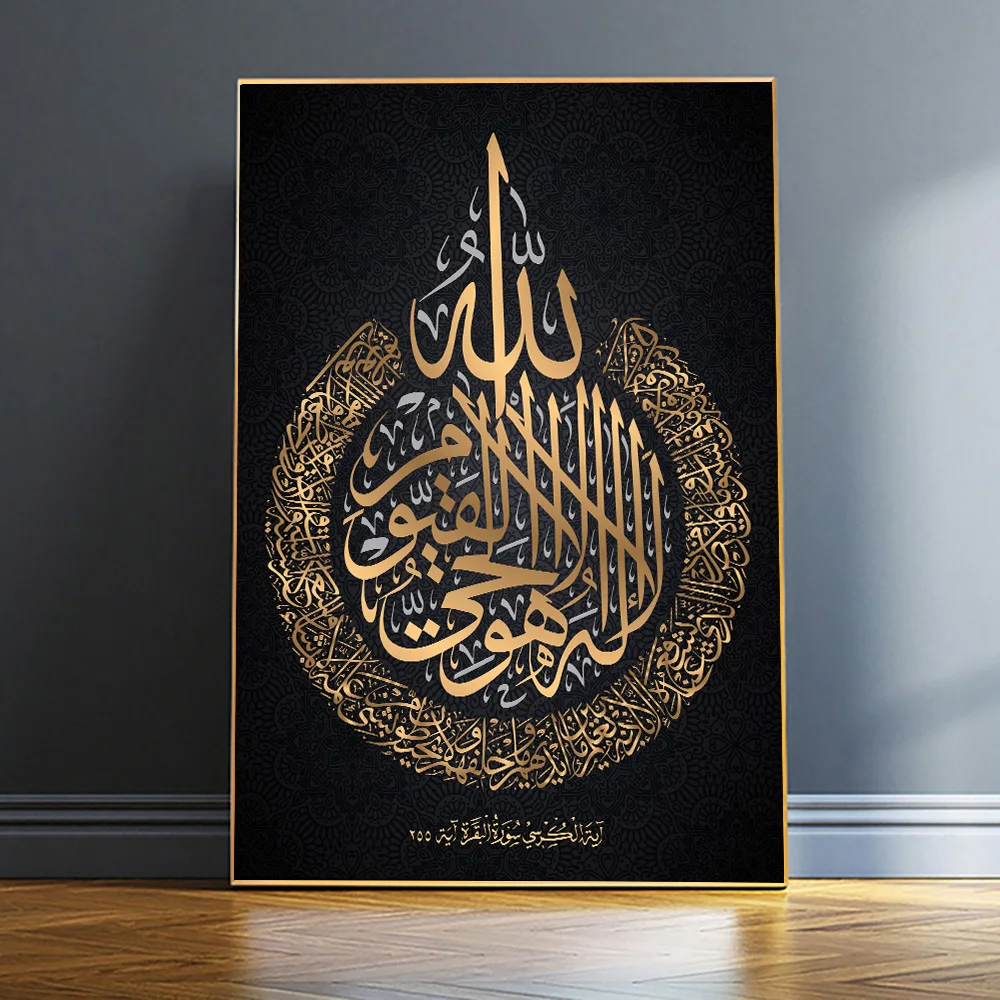 Золотой ислам ic холст настенное искусство ислам каллиграфия Холст Картина стена Аллаха художественные плакаты и принты для мусульманского домашнего декора стен