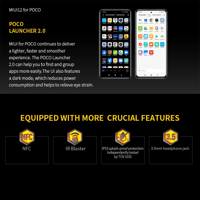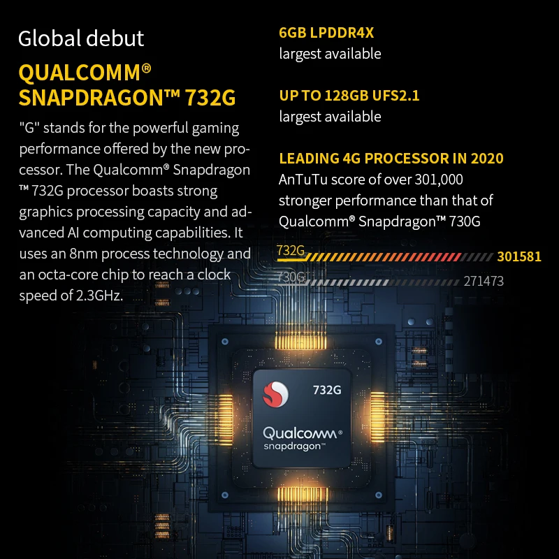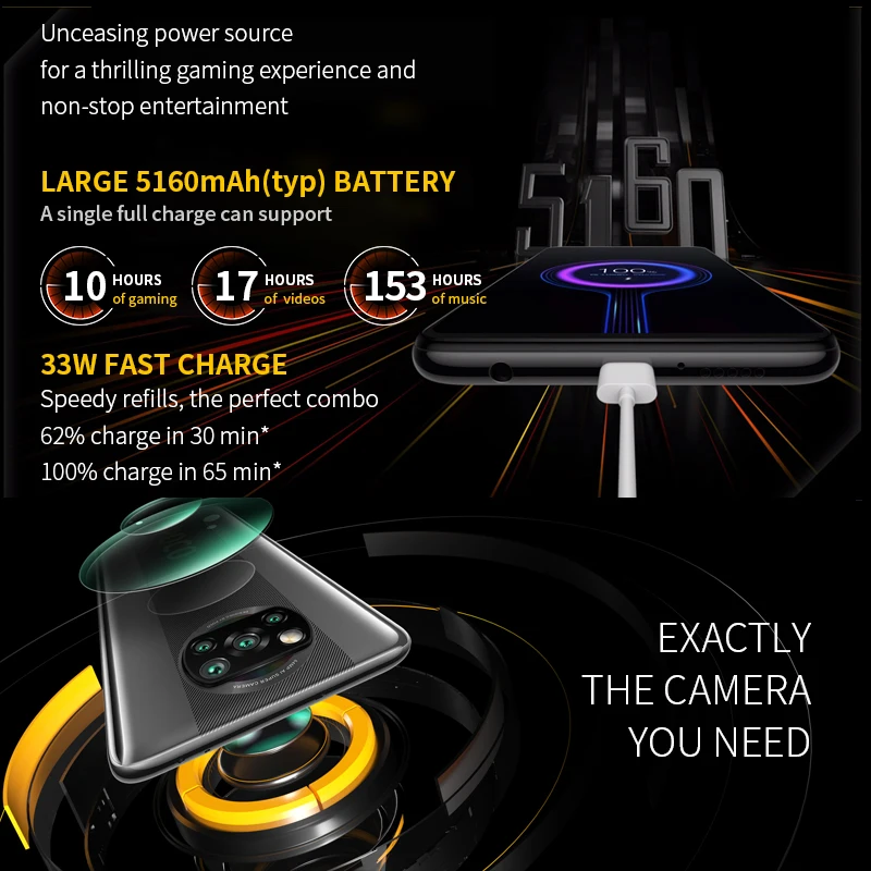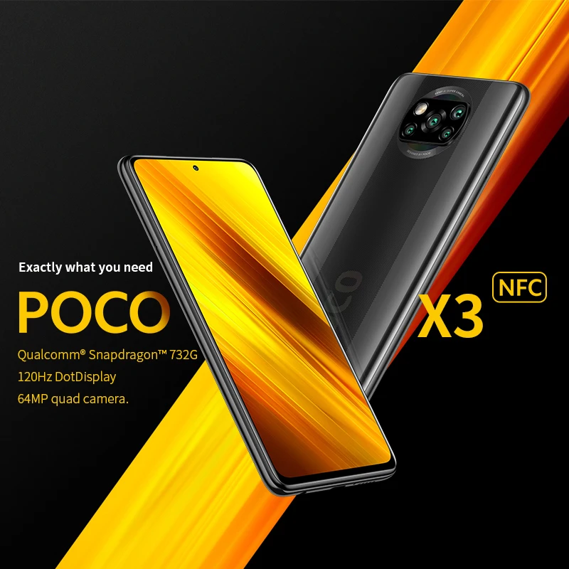 POCO X3 имеет основную камеру 64 мп с Sony IMX682 Still clera и детализированной мощностью 5160 мА · ч, ярким FHD + и частотой обновления экрана 120 Гц. Экран и Qualcomm snapdragon 732G, что делает его первым выбором для любителей развлечений.