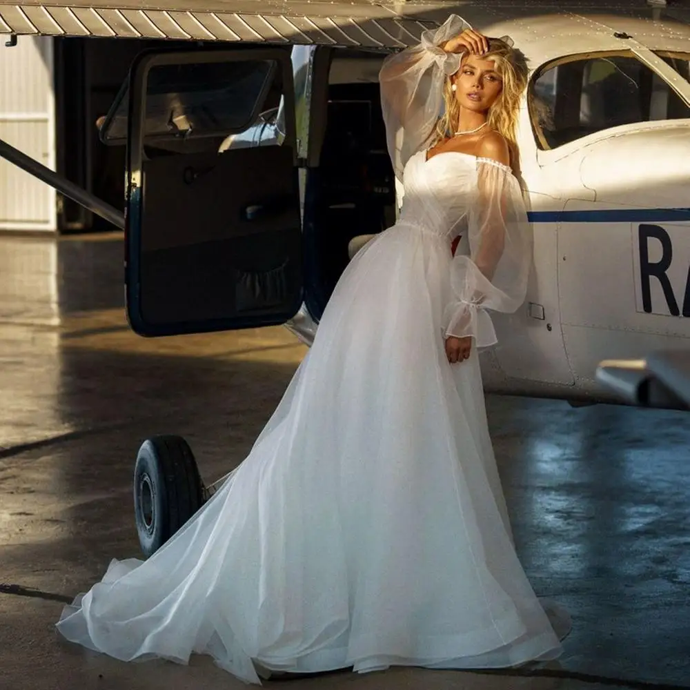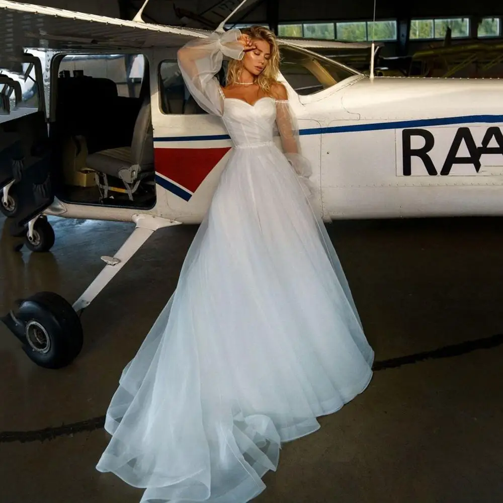 UZN элегантное ТРАПЕЦИЕВИДНОЕ блестящее пышное свадебное платье с длинными рукавами Милое Свадебное Платье Тюлевое со складками платье невесты Vestido de novia