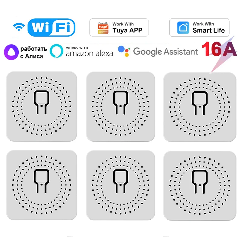 Умный мини-выключатель Tuya 16 А с Wi-Fi, двухсторонний Модуль Автоматизации умного дома с управлением через приложение Smart Life, Alexa Google Home Яндекс. Алиса