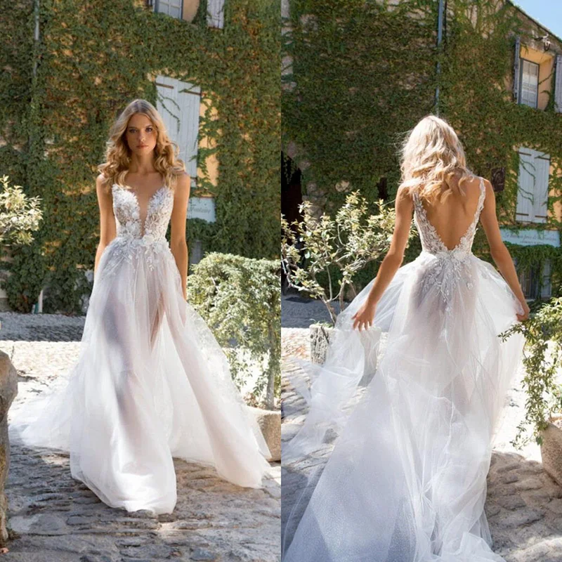 Сексуальные пляжные свадебные платья с открытой спиной 2021, v-обра...