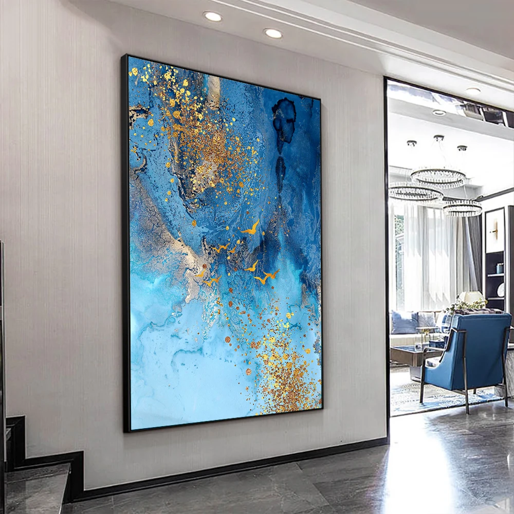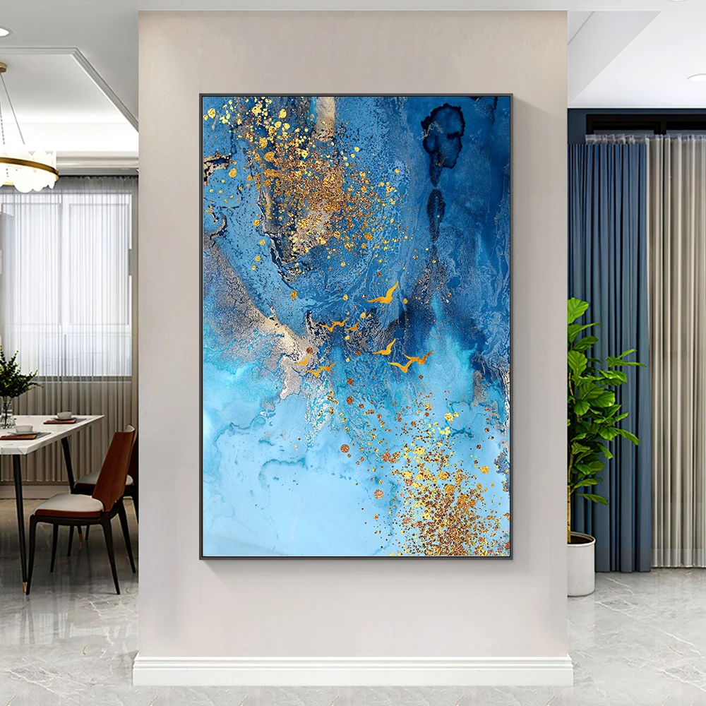 Золотая и синяя волна Абстрактная живопись Печать на холсте плакаты...