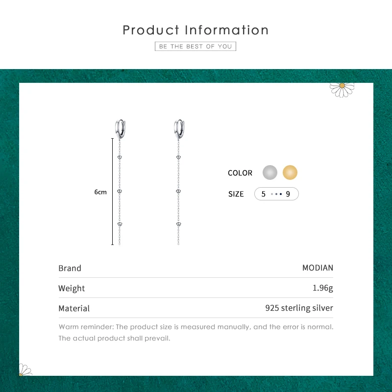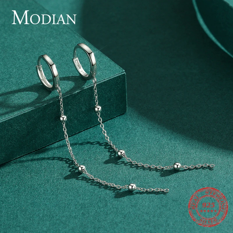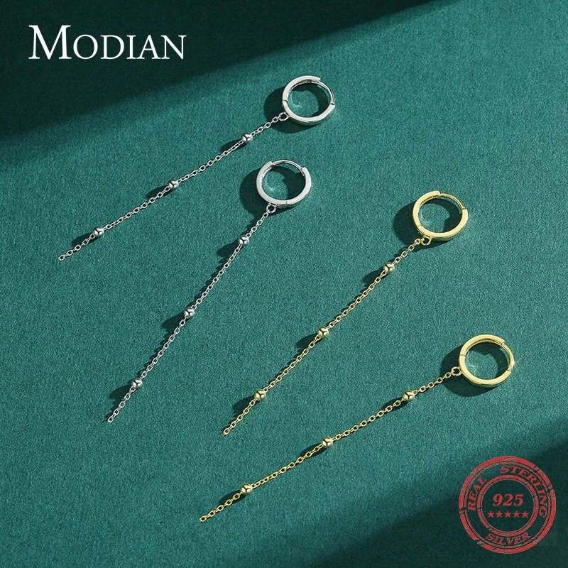Женские Висячие серьги Modian, изящные длинные висячие серьги из настоящего серебра 925 пробы с подвеской-цепочкой