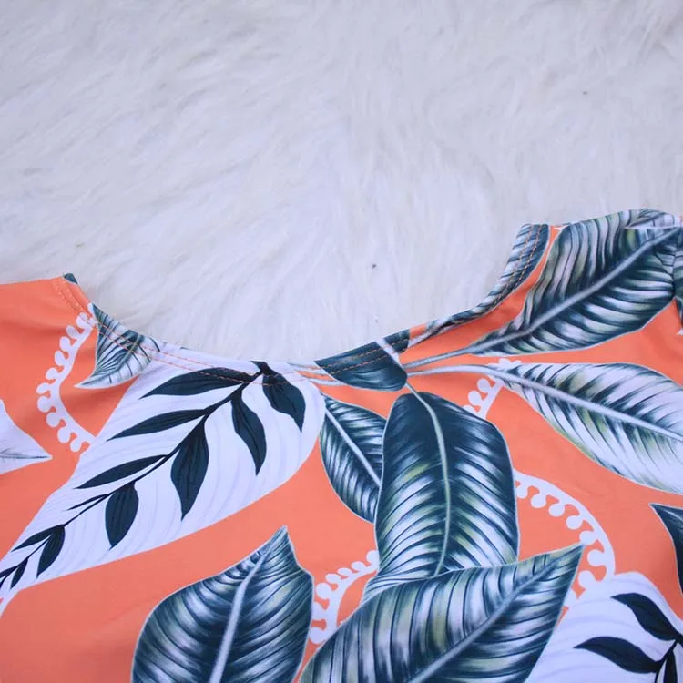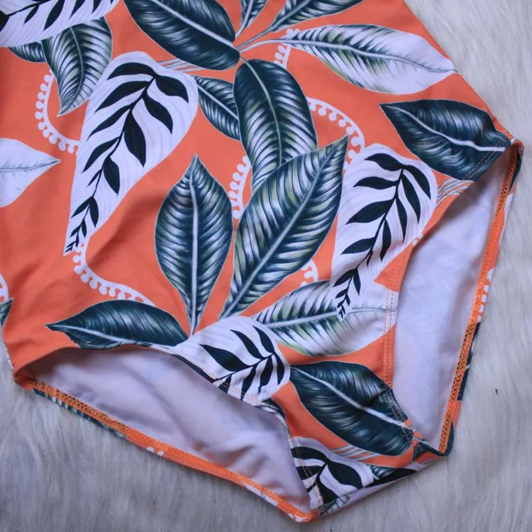 Летний сексуальный купальник с открытой спиной, женский купальник с принтом в виде листьев, с длинным рукавом, пляжный купальник для отдыха, женский бикини, одежда для купания