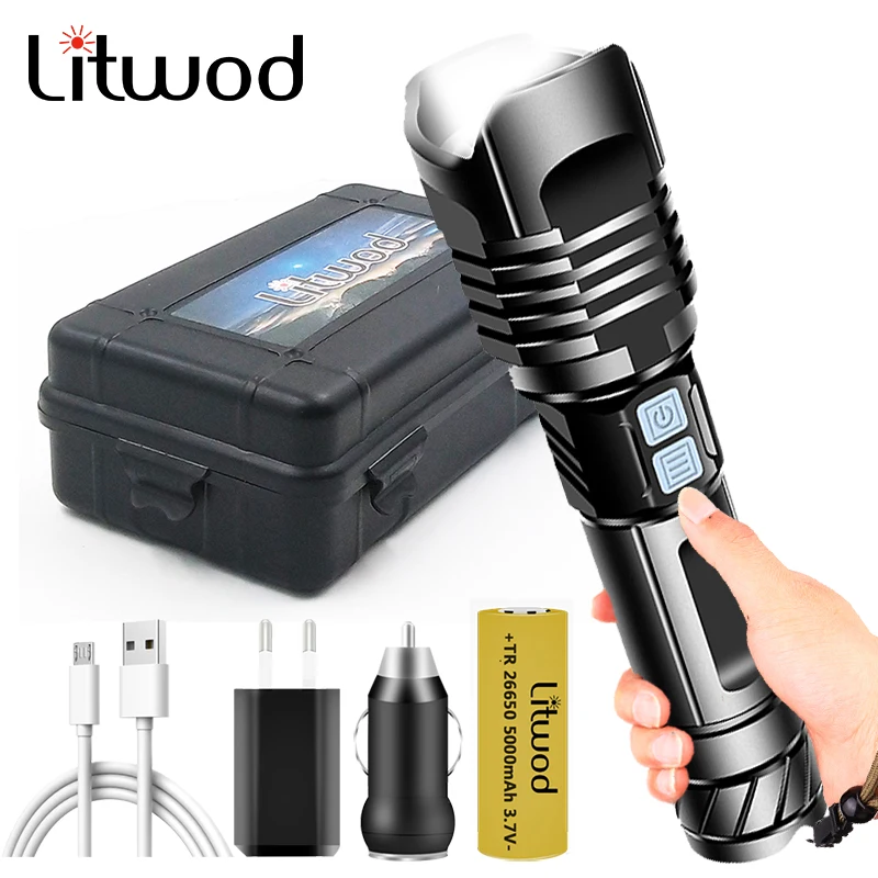 Самый мощный светодиодный фонарик, 26650 лм, тактический Водонепрон...
