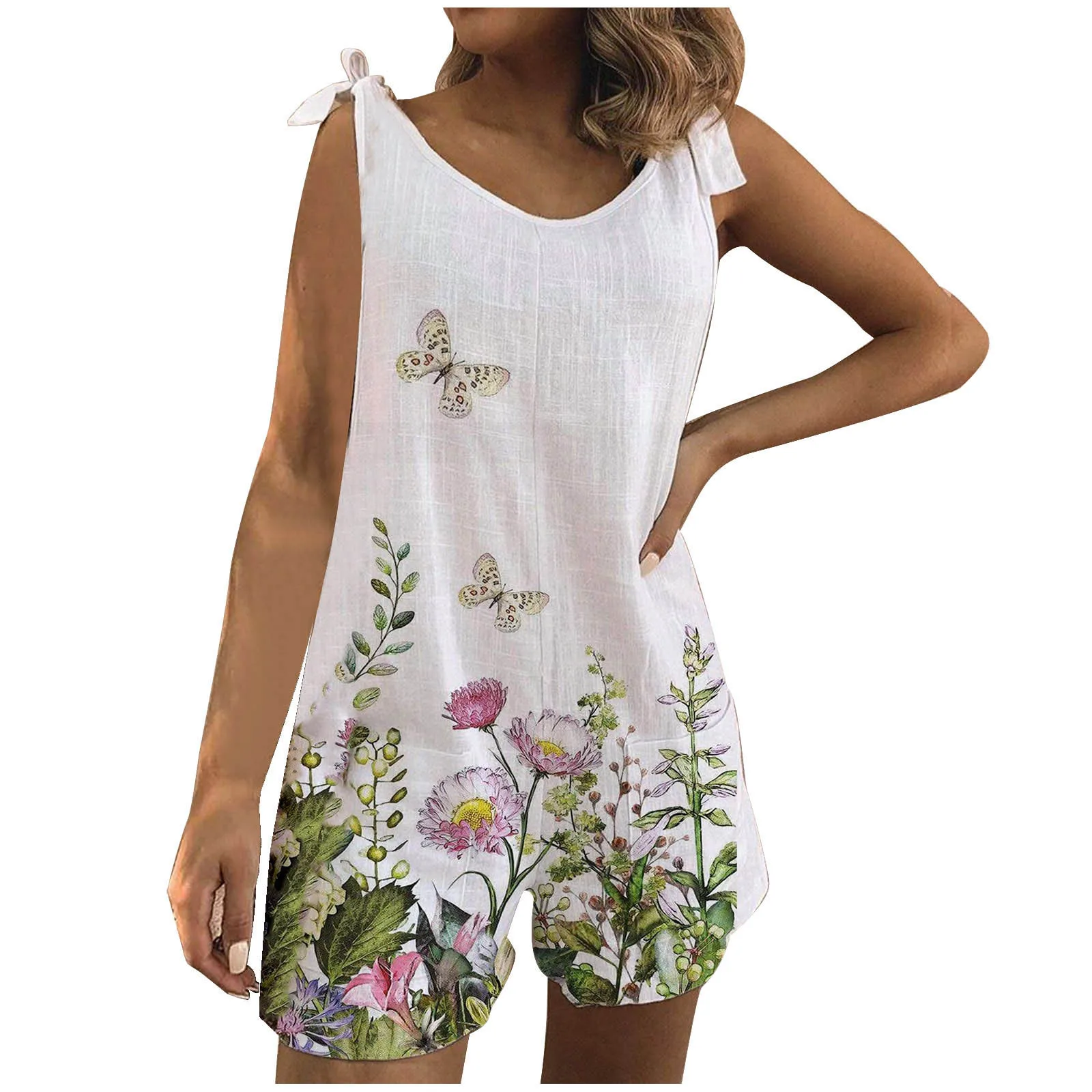 Летний женский комбинезон с маленькими ромашками, сплошной цвет, накладные карманы из хлопка и льна, женский комбинезон на подтяжках, боди noir F4