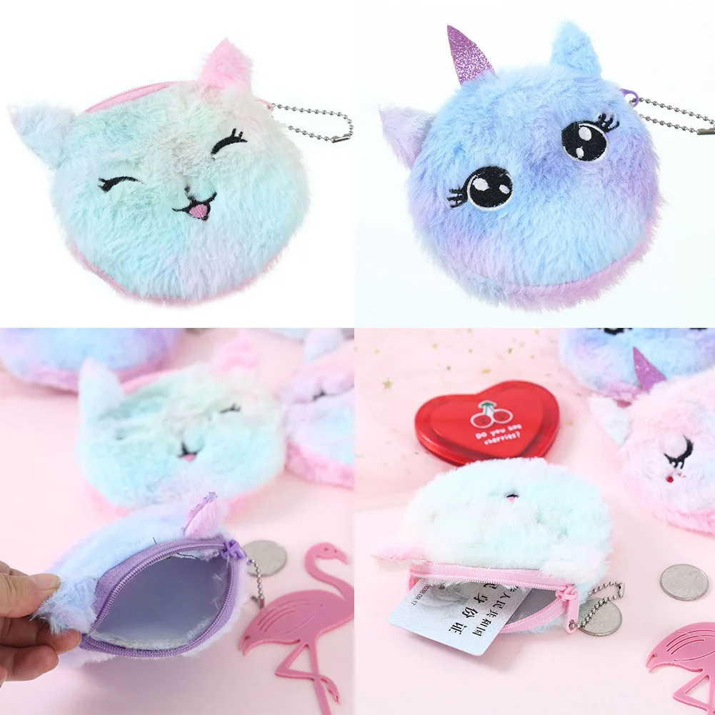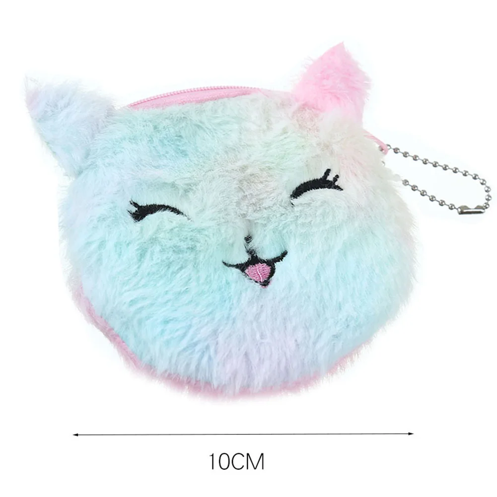 1 шт., миниатюрный Кошелек для монет с мультяшным котом для женщин и девочек, кошелек из плюша с мультяшным рисунком, кошелек на молнии, карман для монет, держатель для кредитных карт, сумка для хранения, новинка