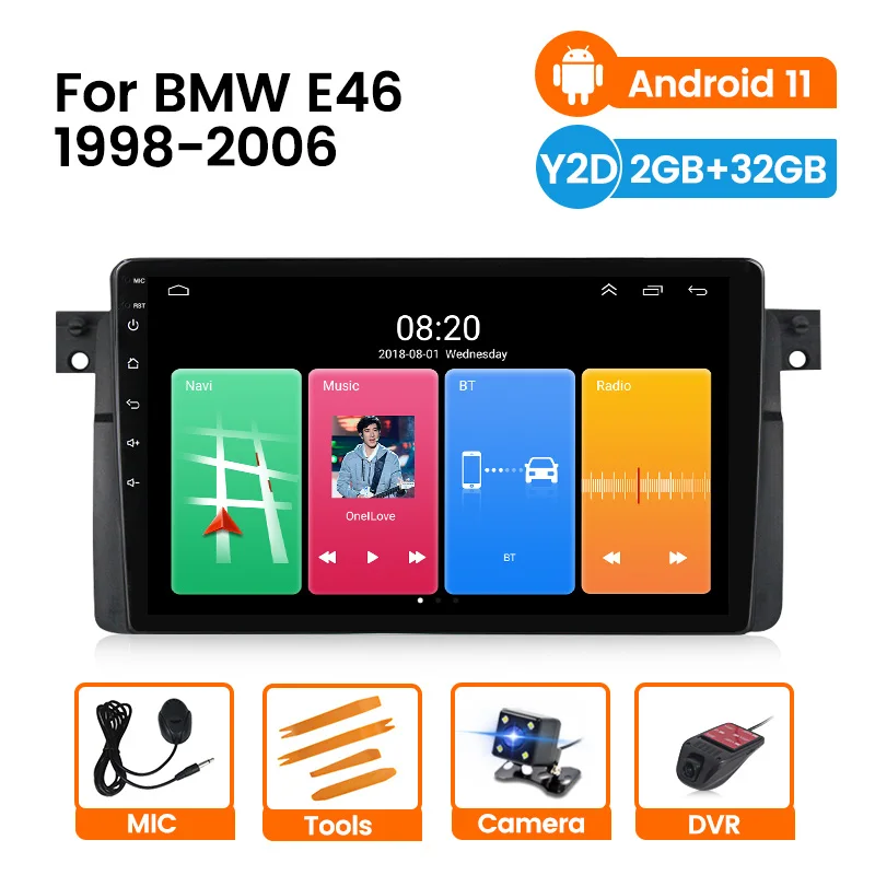 Автомагнитола 2 DIN на Android 11, мультимедийный видеоплеер для BMW E46 M3318i320i325i330335 1998-2006, навигация GPS, BT, аудио, 2 DIN