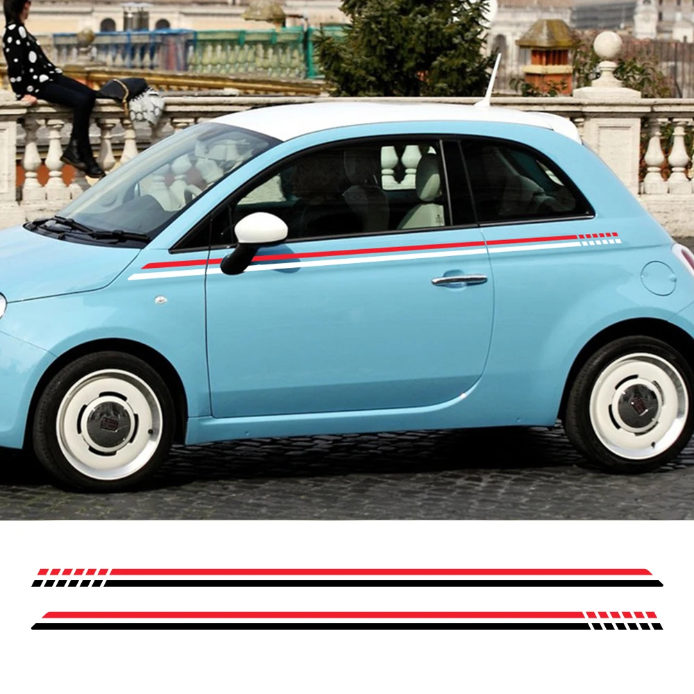 2PCS Car Decals Vinyl Door Side Stripes Stickers For Fiat 500 Abait...