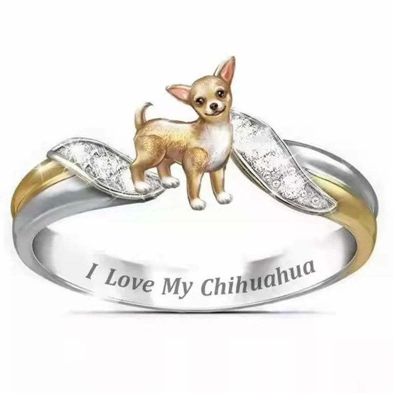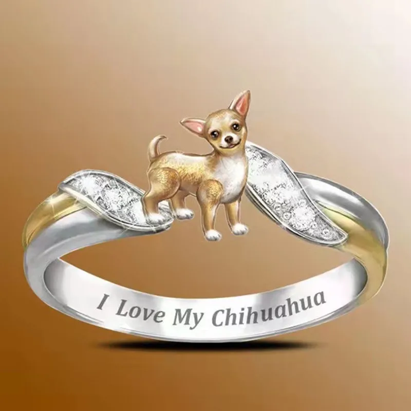 Новое поступление, Женское кольцо PITUTU, роскошные украшения для женщин, в простом стиле, с надписью I Love My домашнее животное чихуахуа, двухцветное, с милой собакой, модное