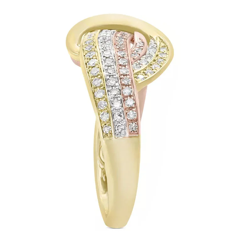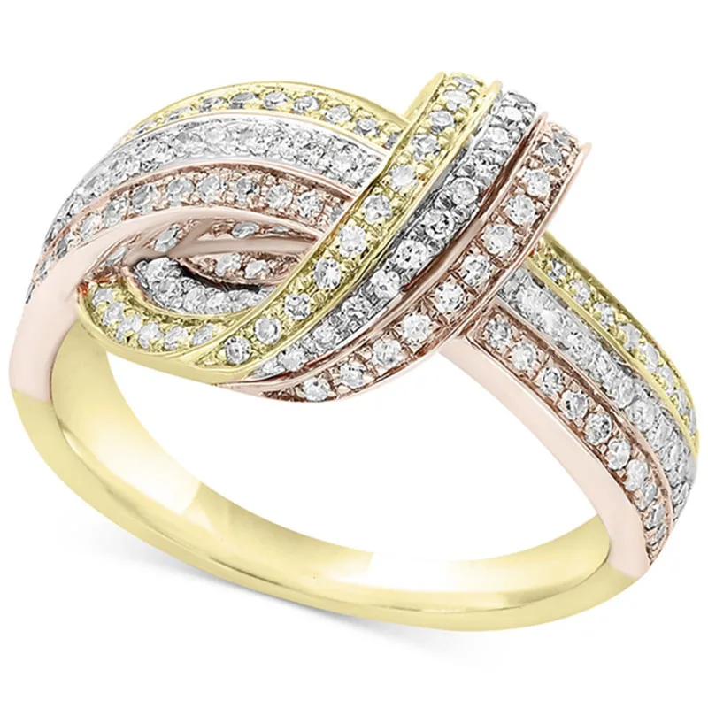 Кольцо женское, трехцветное, с инкрустацией узлом