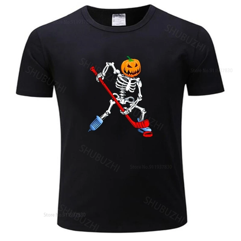 Футболка мужская, с принтом скелета, хоккея, тыквы, Хэллоуина, летняя хлопчатобумажная футболка