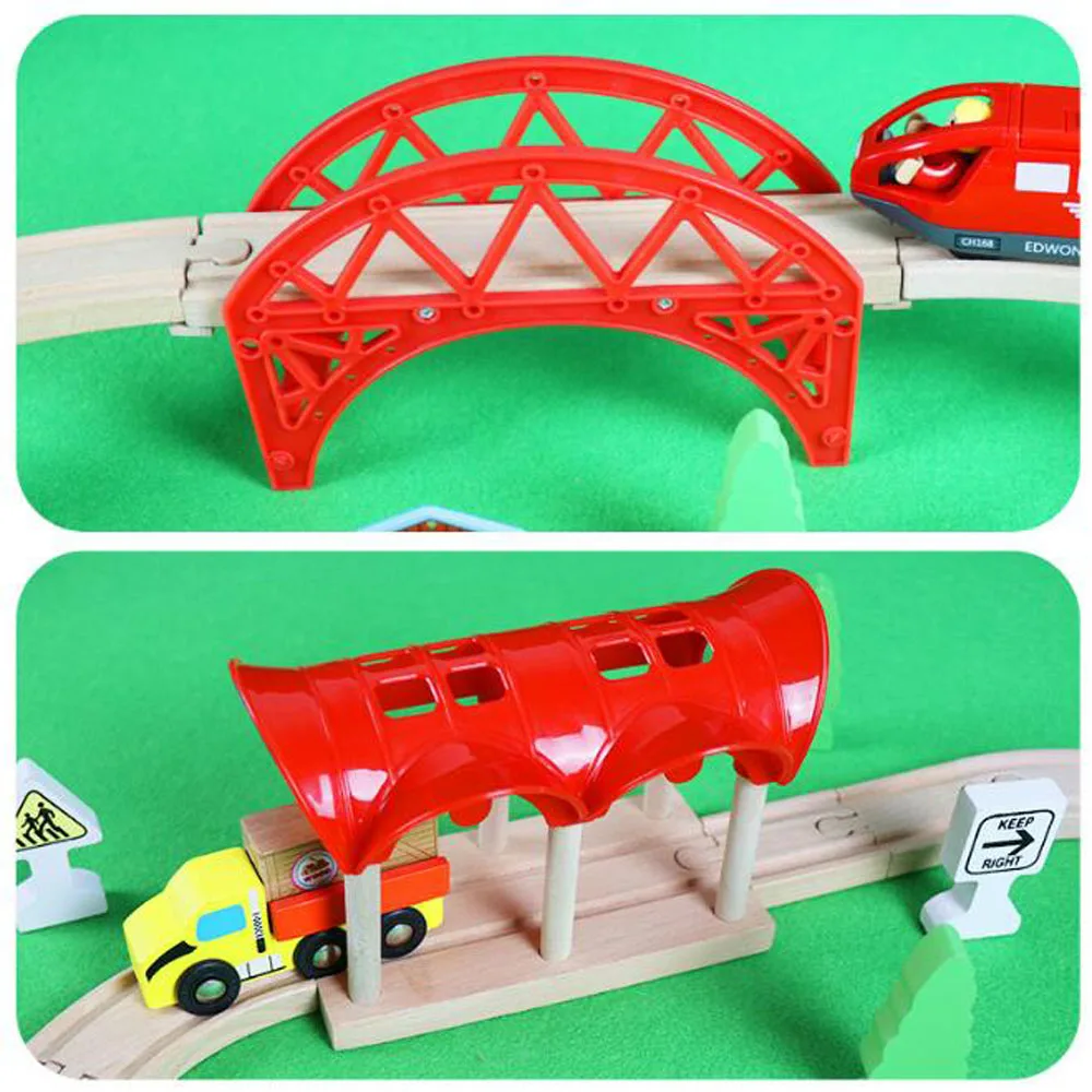 Аксессуары для трека деревянного поезда, железная дорога, железнодорожная станция, мост, туннель, совместим со всеми брендами, деревянные треки, игрушки