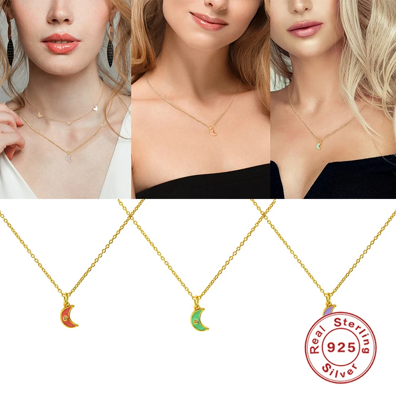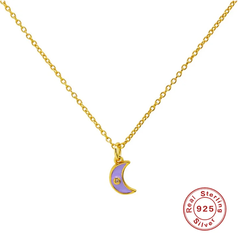 Aide реальные 925 стерлингового серебра фиолетового и зеленого цвета броши с красной эмалью в виде Луны, подвеска, колье для женщин, роскошные циркон золотая цепочка ожерелье ювелирные изделия