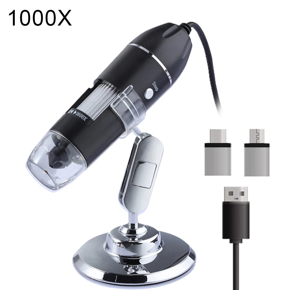 Цифровой USB-микроскоп, регулируемый электронный микроскоп с увеличением 1600x8 светодиосветодиодный, 3 в 1