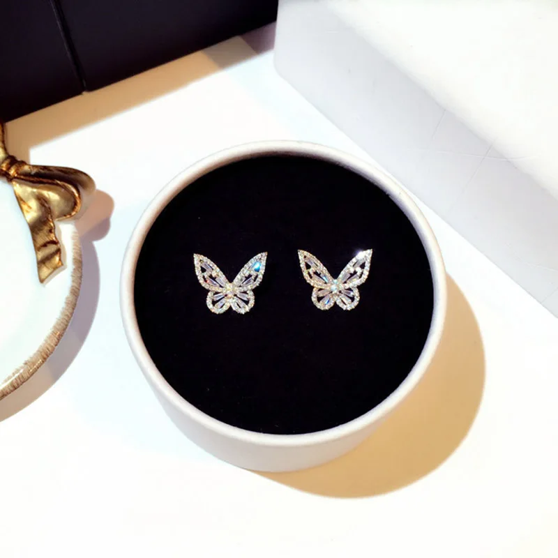 Серьги-гвоздики для женщин в Корейском стиле класса люкс с цельными круглыми кристаллами, 4 вида Бабочка кругу проложен микро циркон вечерние подарок ювелирные изделия KBE330