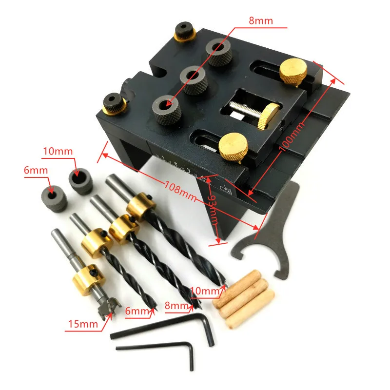 Особенности:Многофункциональная направляющая для сверления дюбелей и вертикальных отверстий.В самозатягивающемся зажиме удобно зафиксировать сверло на дереве.Высокоточные весы, легко регулировать высоту сверления и глубину отверстия.Изготовлен из высококачественного алюминия, поверхность анодирована, износостойкая и практичная, имеет длительный срок службы.Это идеальный набор инструментов для деревообработки DIY, прост в эксплуатации и использовании. Характеристики:Материал: 6061 алюминийЦвет: черныйНакатанная буровая муфта Количество: 3 шт.Накатанная буровая муфта Размер: 8 мм/0,3 дюймаКоличество бурильных втулок: 1 шт.Размер рукава сверла: 15 мм/0,6 дюймаКоличество сверл: 4 шт.Размер сверла: 6 мм, 8 мм, 10 мм, 15 ммДиапазон зажима: 5 ~ 60 мм/0,2 ~ 2.4inРазмер изделия: 108*100*93 мм/4,3*3,9*3,7 дюймовРазмер посылка: 180*140*140 мм/7,1*5,5 * 5.5inПосылка Вес: 1383,5 г/3.1lb Посылка:1 * буровая направляющая2 * сверлильный патрон (6/10 мм)4 * сверло с воротником-стойкой2 * шестигранный ключ1 * сверлильный гаечный ключ3 * дюбель