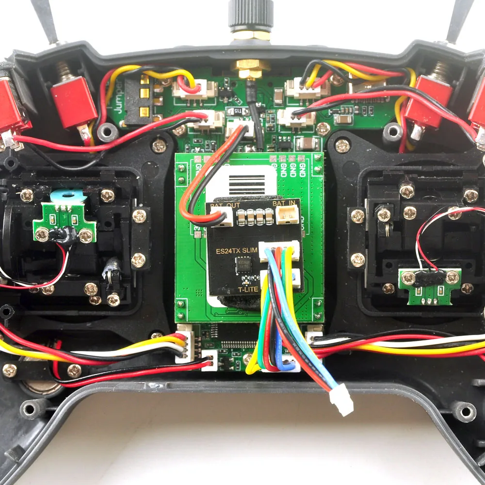 Конкретный Тонкий 2,4 GHz ExpressLRS TX модуль для Jumper T-lite выходит сейчас.Этот тонкий модуль TX разработан с помощью модели Happymodel и основан на радиочастотном модуле с открытым исходным кодом-ExpressLRS, который является очень популярной низкой задержкой и высокой частотой повторной вспышки радиочастотного модуля для радиоуправляемых самолетов и гонок FPV. Его основная аппаратная архитектура-ESP32, ESP8285 и SX1280 RF-чип. Модуль ES24TX -Slim-это полное решение, которое уже предварительно загрузило прошивку Expresslrs, и это подключи и работай для Jumper T-lite.Этот тонкий модуль TX поставляется с ЧПУ чехол из алюминиевого сплава, который может помочь модулю рассеивать тепло в условиях высокой мощности.Из-за дефекта источника питания T-lite с внешним высокомощным TX модулем, мы предоставляем модуль питания, чтобы гарантировать, что модуль TX может работать стабильно в условиях высокой мощности.