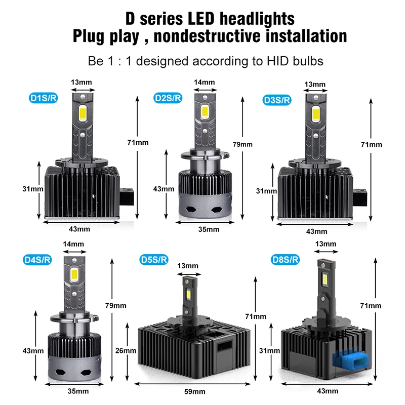 1. Этот продукт подходит только для модернизации оригинального автомобиля с функцией ксеноновой лампы HID. Не подходит для модернизации модели галогенной лампы.2. В настоящее время доступны следующие модели: D1S/D1R/D2S/D2R/D3S/D3R/D4S/D4R/D5S/D8S3. Убедитесь, что HID балласт оригинального автомобиля может работать должным образом