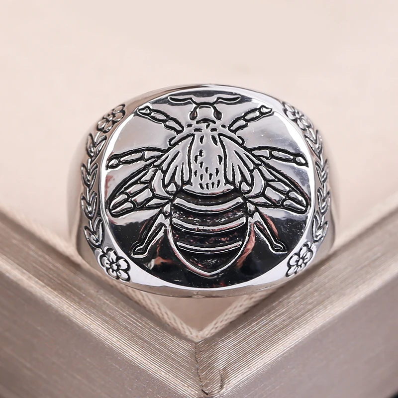 Винтажное серебряное кольцо с гравировкой пчелы и бабочкой для мужч...