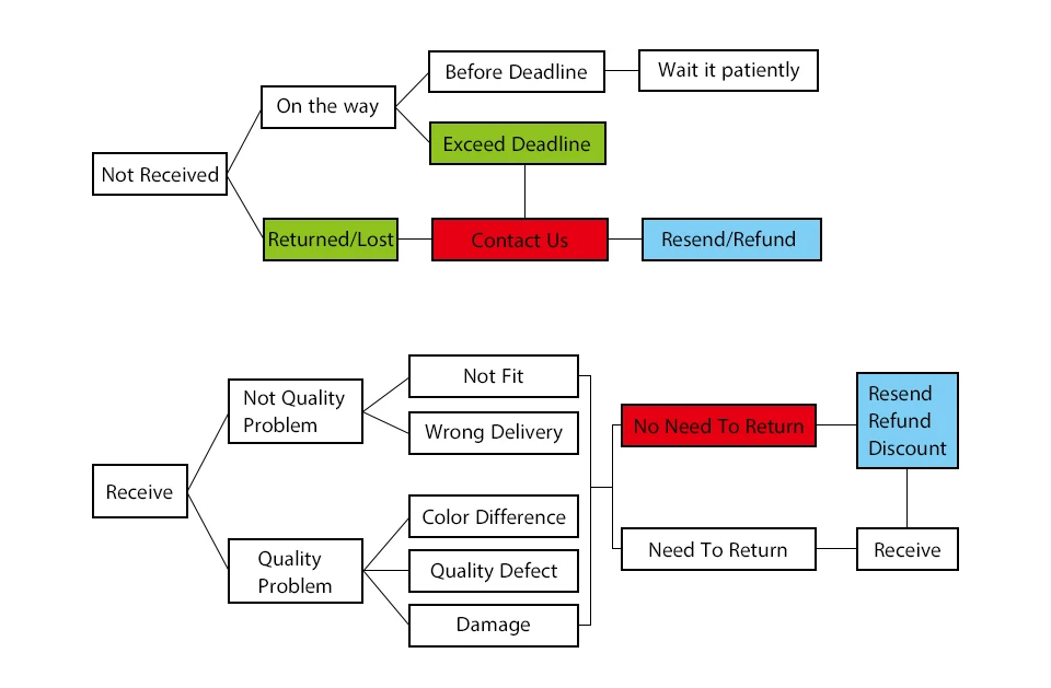 Если товар поврежден или потерян,Пожалуйста, свяжитесь с нами, Мы отправим их напрямую или вернем вам деньги.