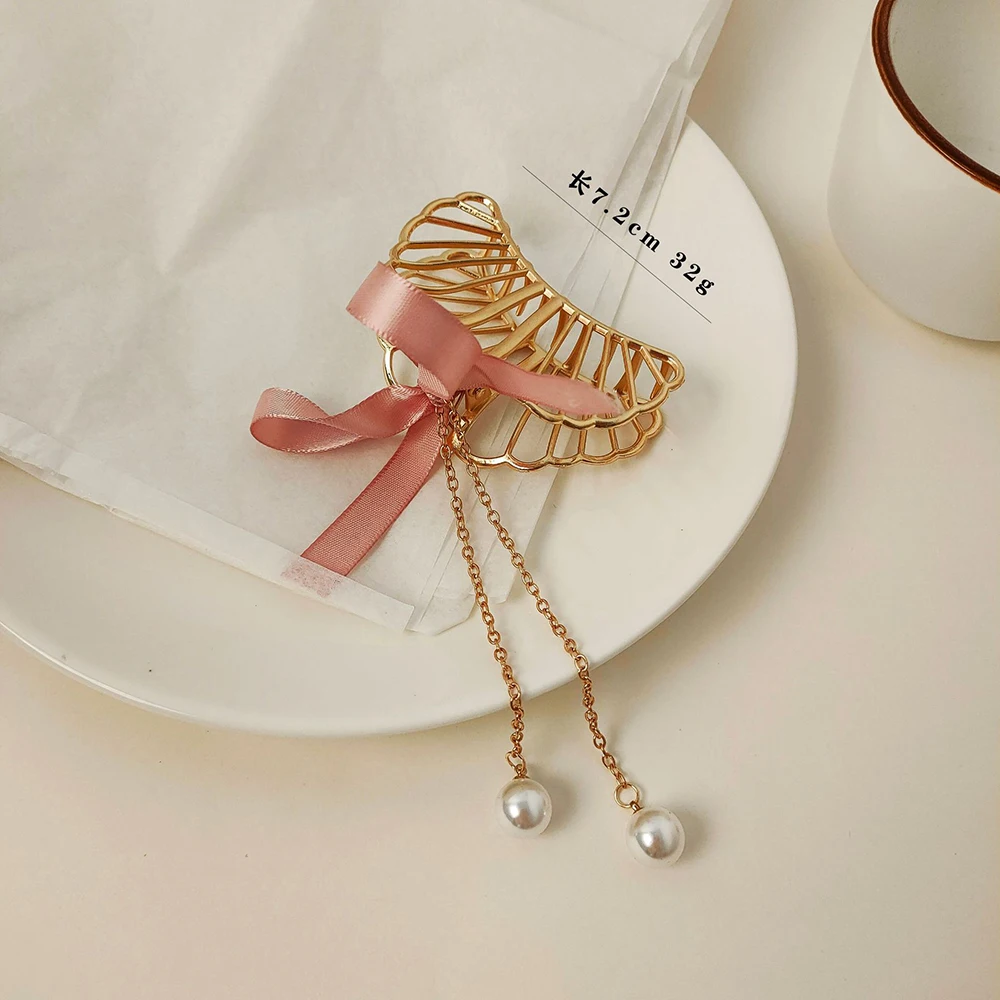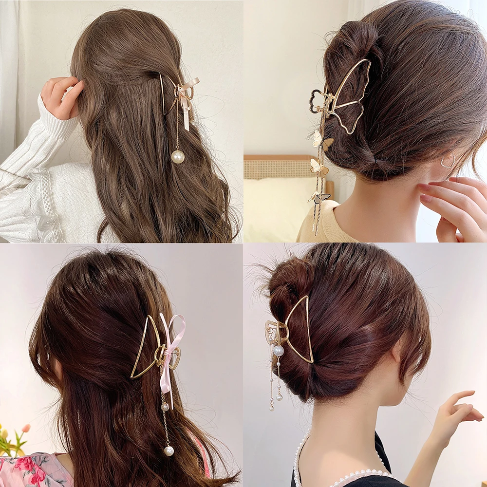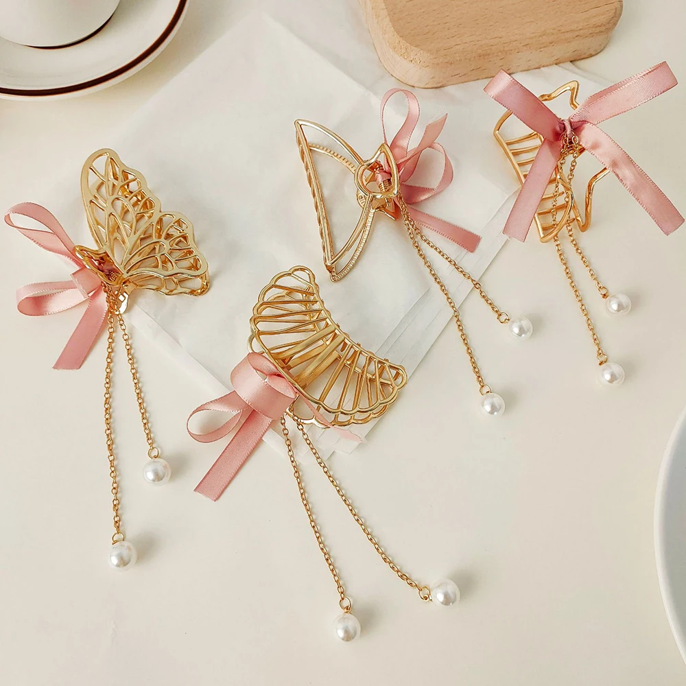 Заколки для волос женские с жемчужинами и бабочками, винтажные металлические зажимы для волос золотистого цвета с вырезами, ювелирные аксессуары