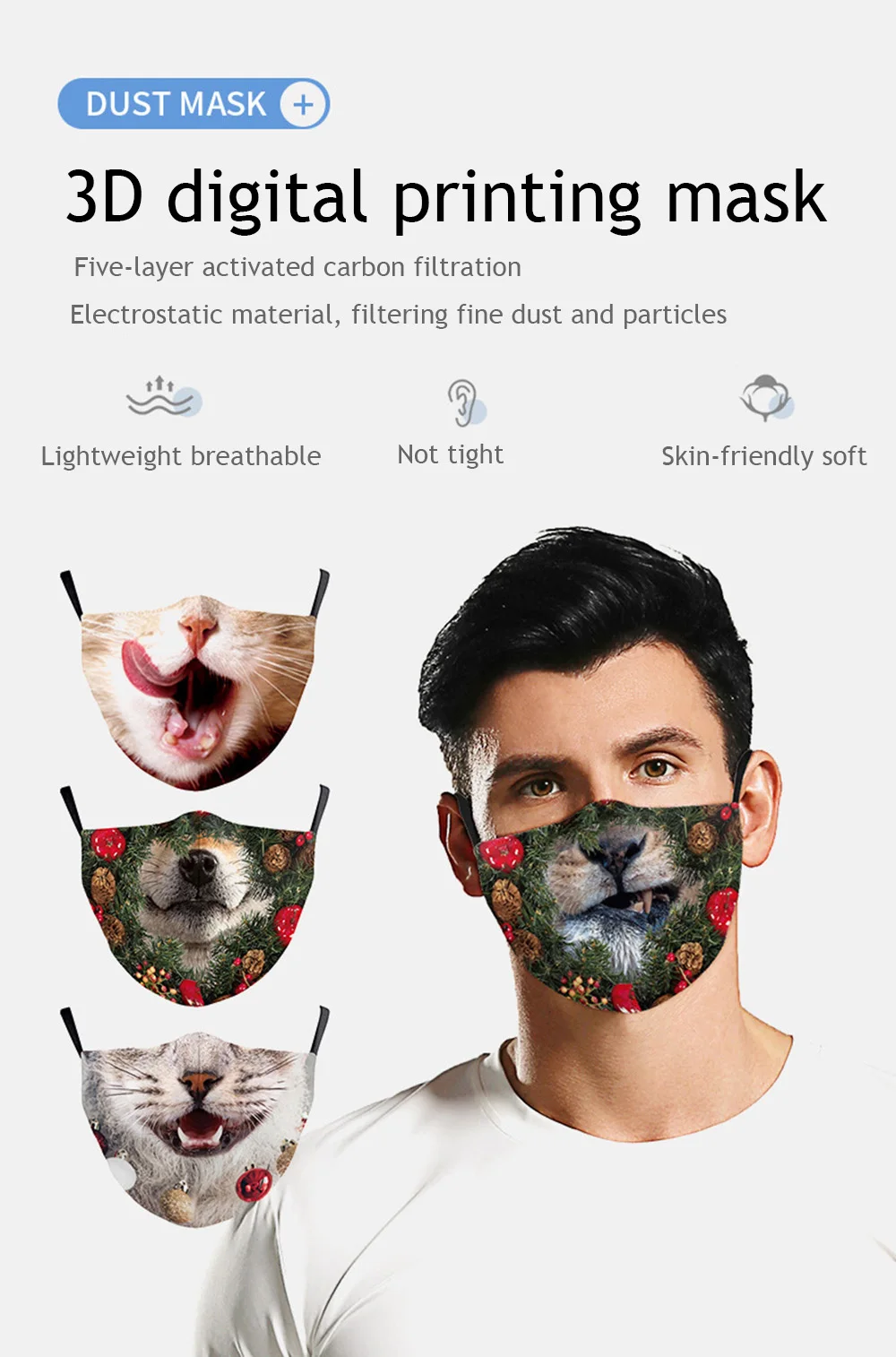 Маска Пылезащитная многоразовая для женщин и мужчин, с 3D-принтом
