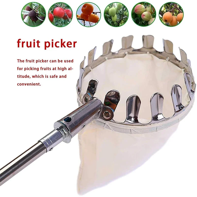 Материал-Металлические зубцы и нейлоновый Хлопковый мешок, который хорошо сделан для резки стеблей без ушиба ваших фруктов. Собранные фрукты более гарантированы.