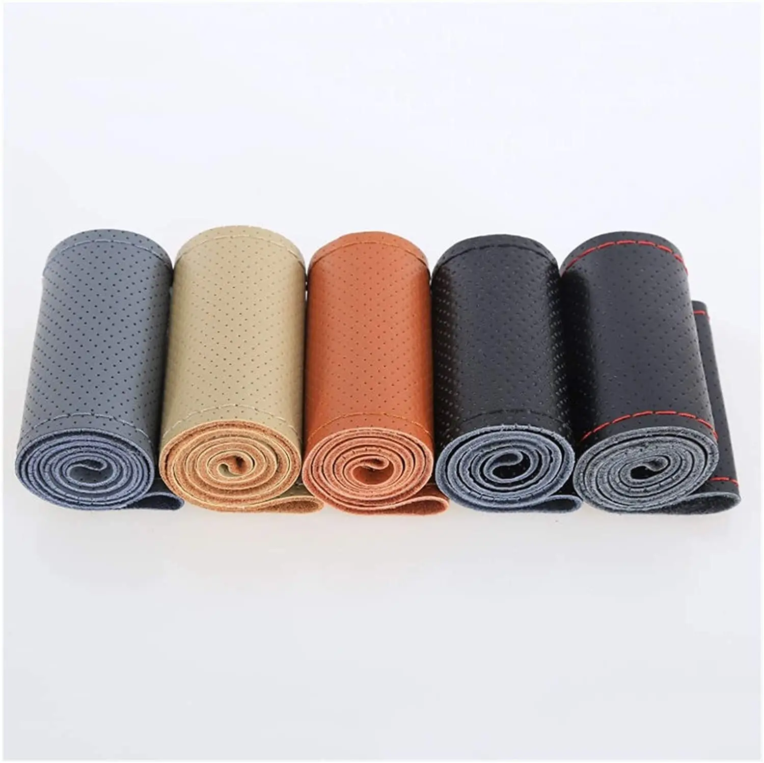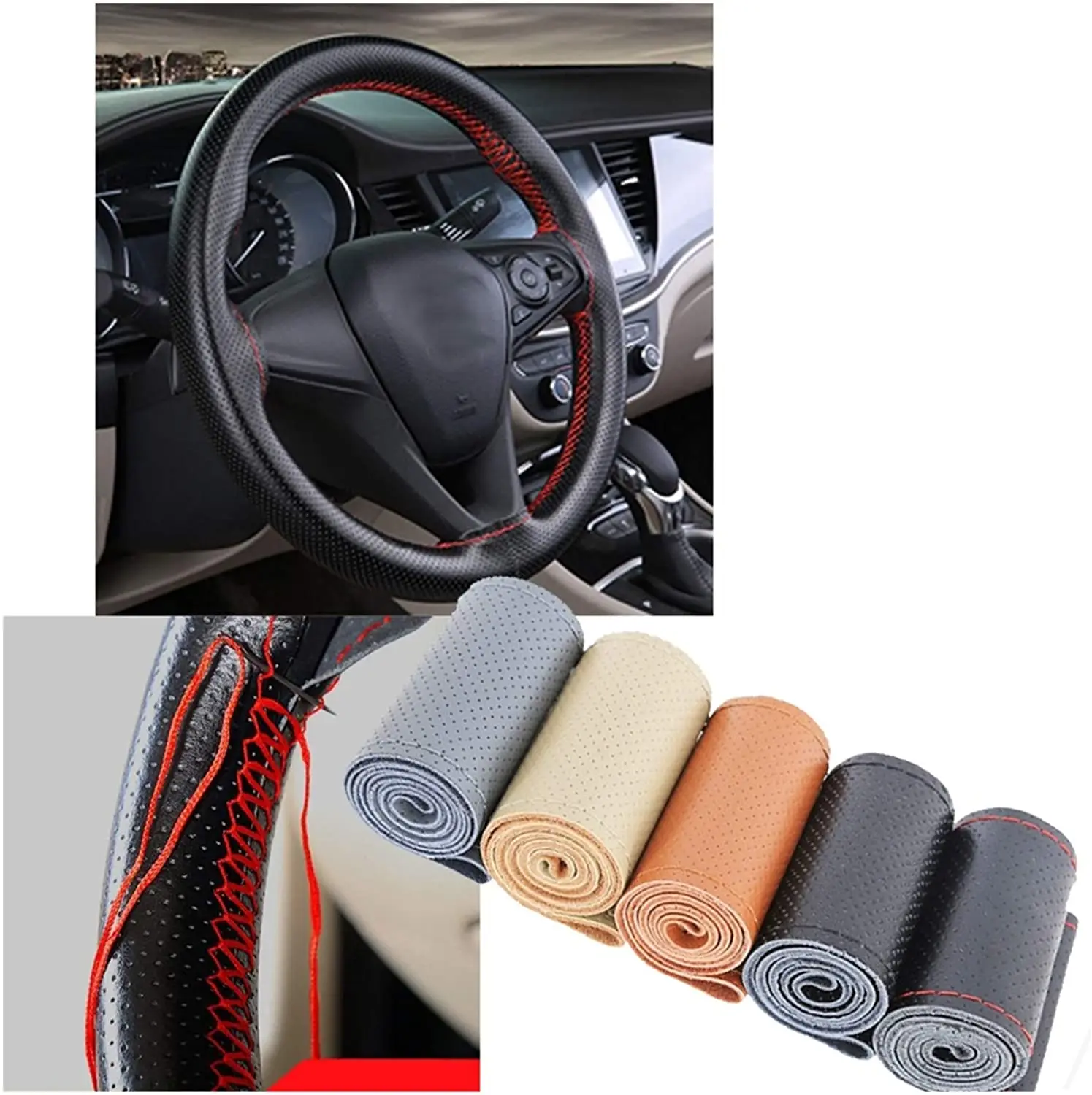 Оплетка рулевого колеса 38 см, чехол из искусственной кожи с иголкой и нитью, текстурные мягкие аксессуары для автомобиля сделай сам, St