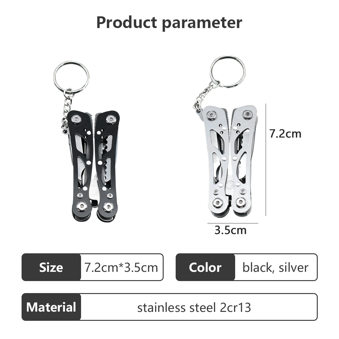 Описание: 1. Многофункциональные складные плоскогубцы из нержавеющей стали 2. Маленький и изысканный, легко носить с собой 3. Лезвие изготовлено из высококачественной новой нержавеющей стали 4. Подходит для семейного, полевого и автомобильного аварийного использования