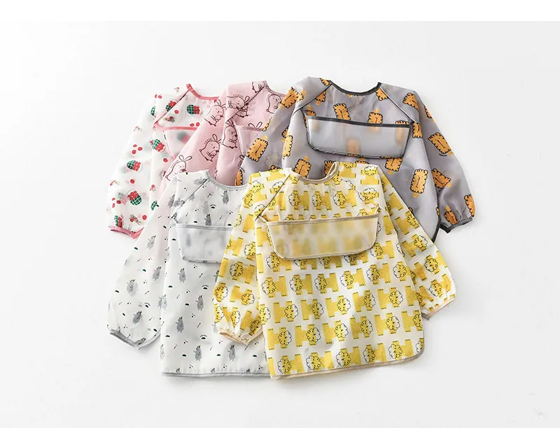 Водонепроницаемые детские нагрудники для кормления детей нагрудник с длинным рукавом для девочек и мальчиков детские нагрудники с мультяшными рисунками Слюнявчики нагрудники с карманами