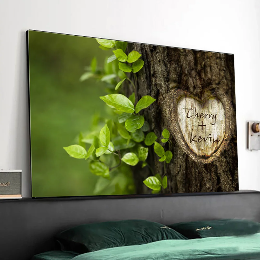Добавьте ваше имя и имя любимого человека к персонализированному художественному произведению, вырезав их на дерево.