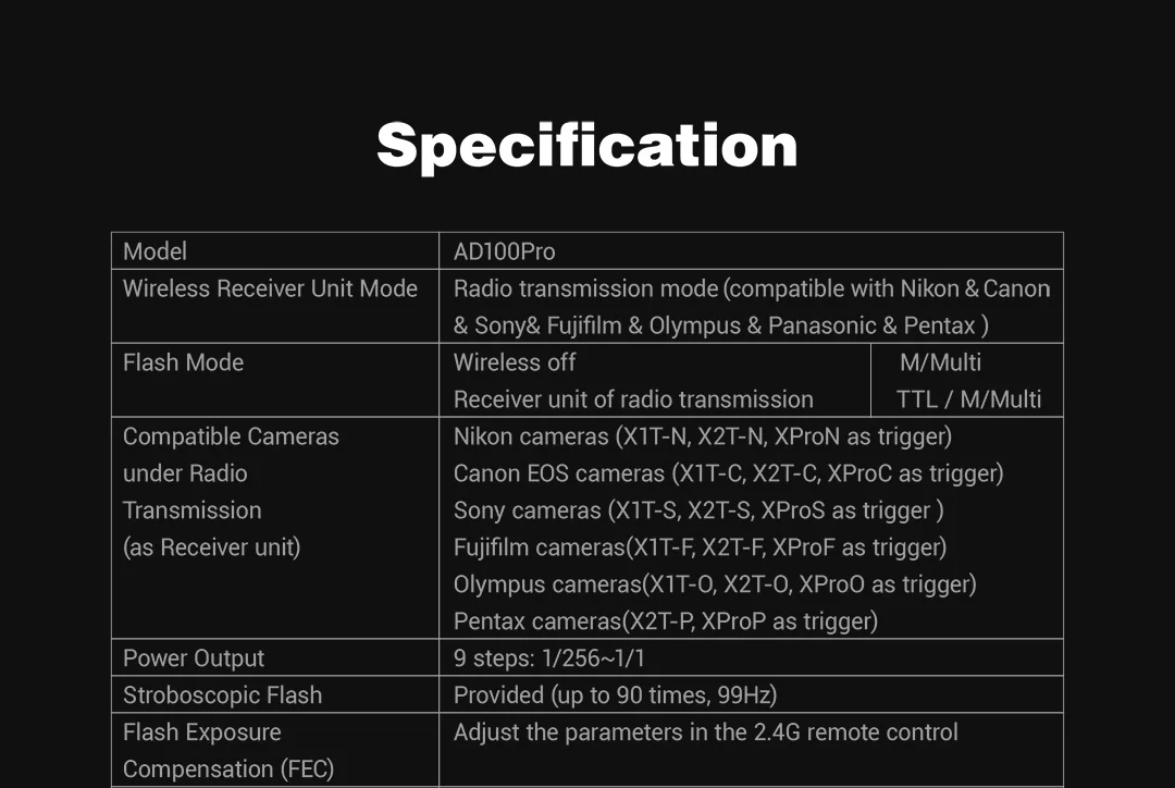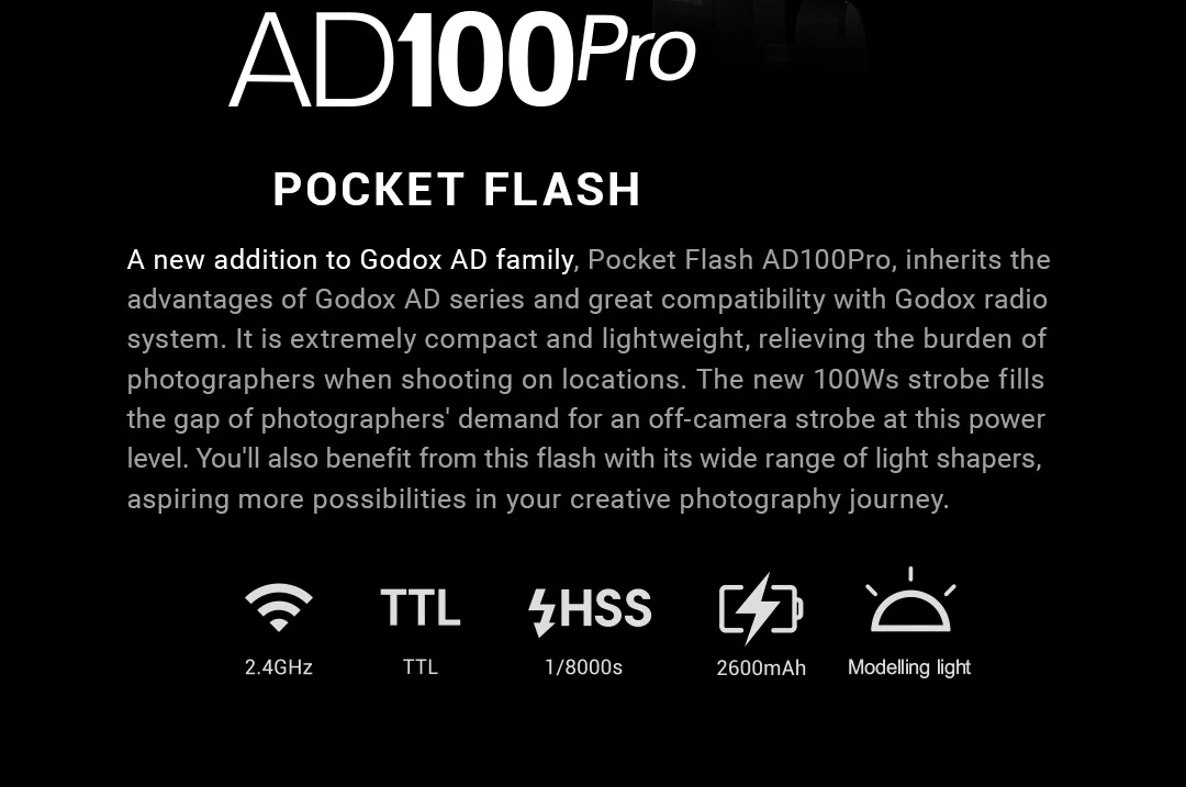 Godox AD100 Pro Вспышка AD100Pro 100Ws 2,4G HSS 18000s TTL наружная карманная вспышка Speedlight для Sony Nikon Canon Fujifilm