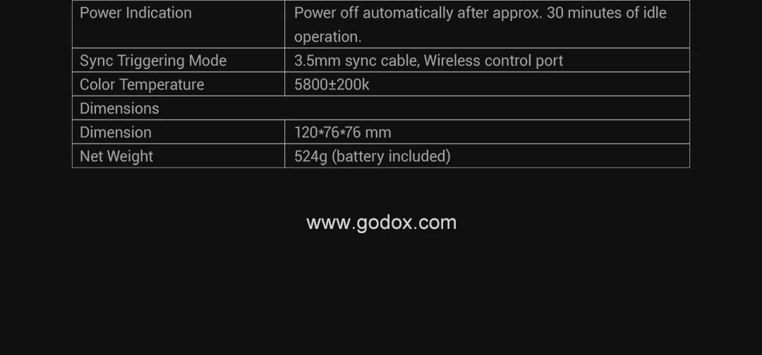 Индикатор готовой вспышки: светодиод, звуковой сигнал; Спящий режим вспышки автоматически после 30 минут неиспользования
