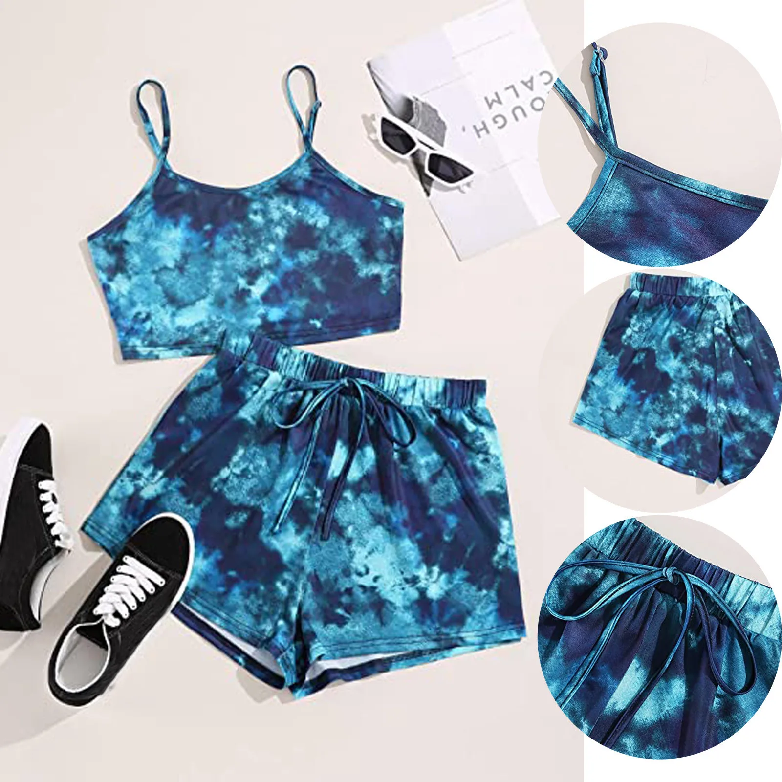 Женский модный костюм, комплект из двух предметов, повседневный топ без рукавов и шорты