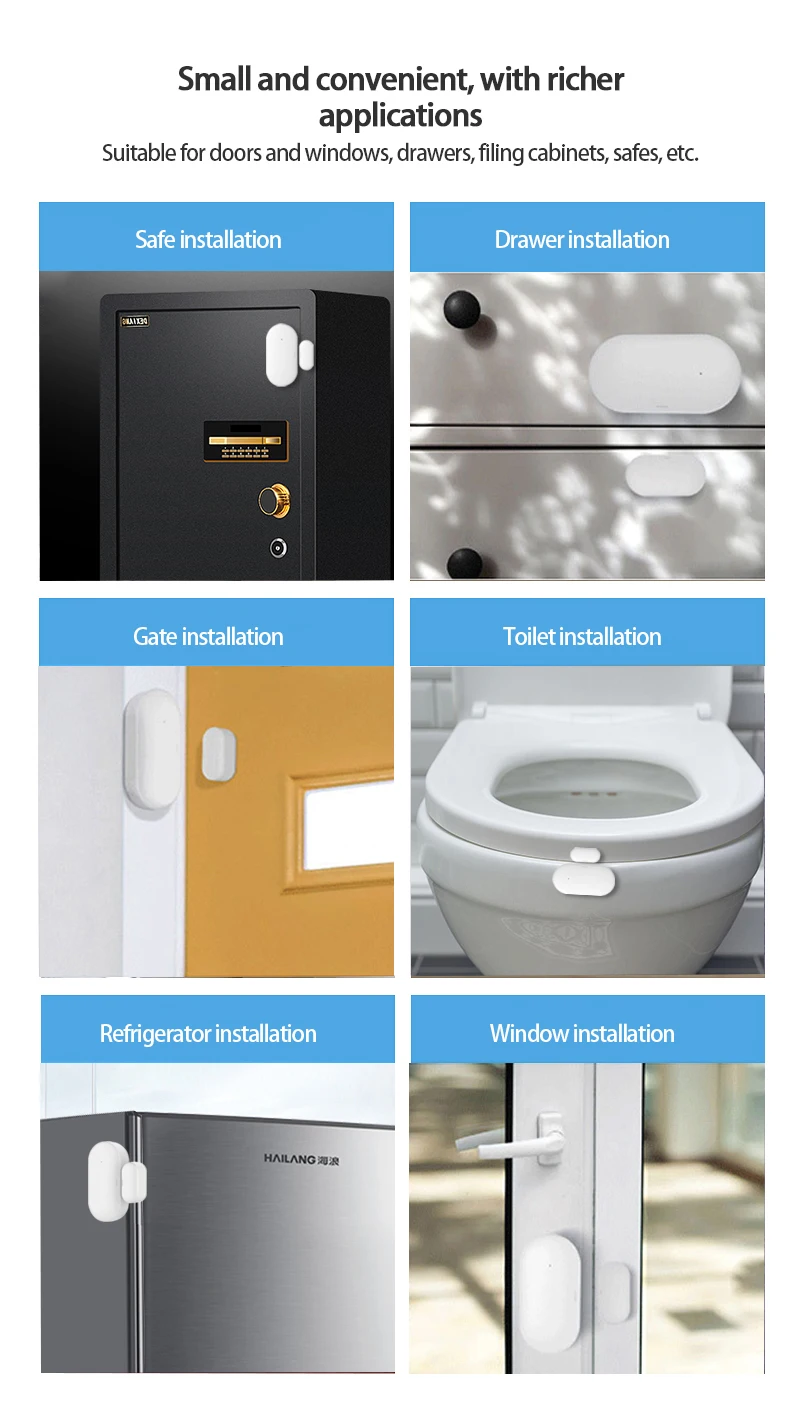 При незаконном открытии двери и окна датчик двери отправит сигнал тревоги в режиме реального времени, и пользователь может удаленно получить напоминание о тревоге через мобильный телефон.