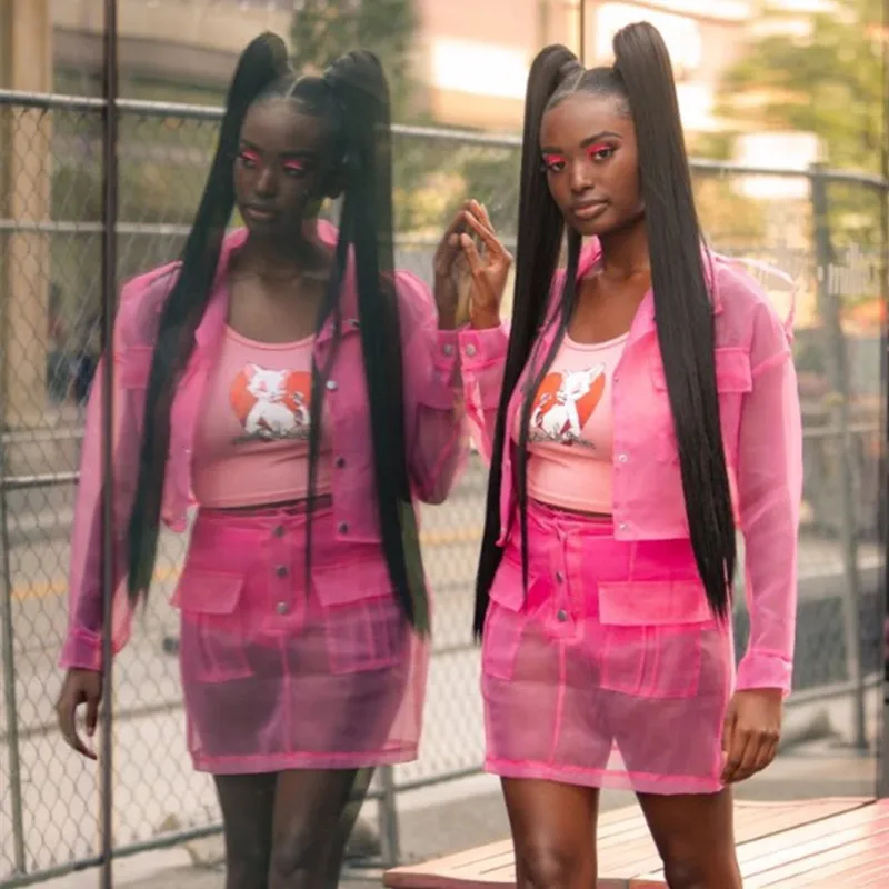 CHAOP Летняя женская обувь розового цвета из органзы сетки пикантные комплекты комплект из 2 предметов, куртка и юбка, модная блузка на бретельках, Клубные наряды милые женской одежды новый