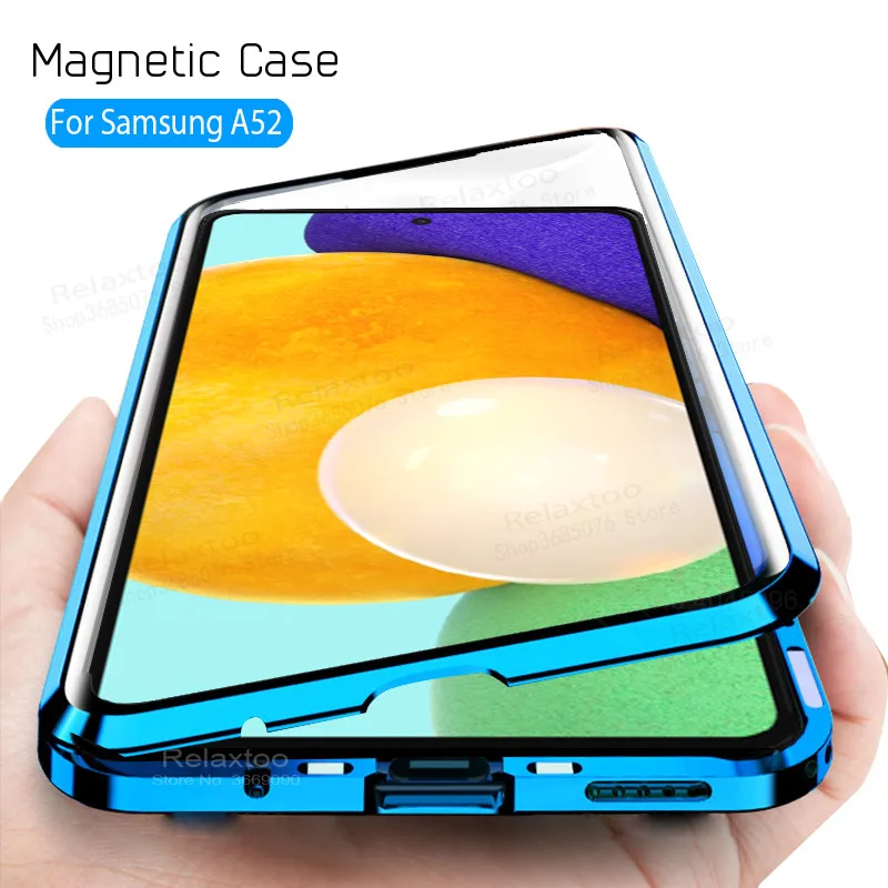 Магнитный флип-чехол для samsung galaxy a52 360 a 52 52A 5G 4G A525F A526, двухсторонний стеклянный чехол с металлическими краями, 2021