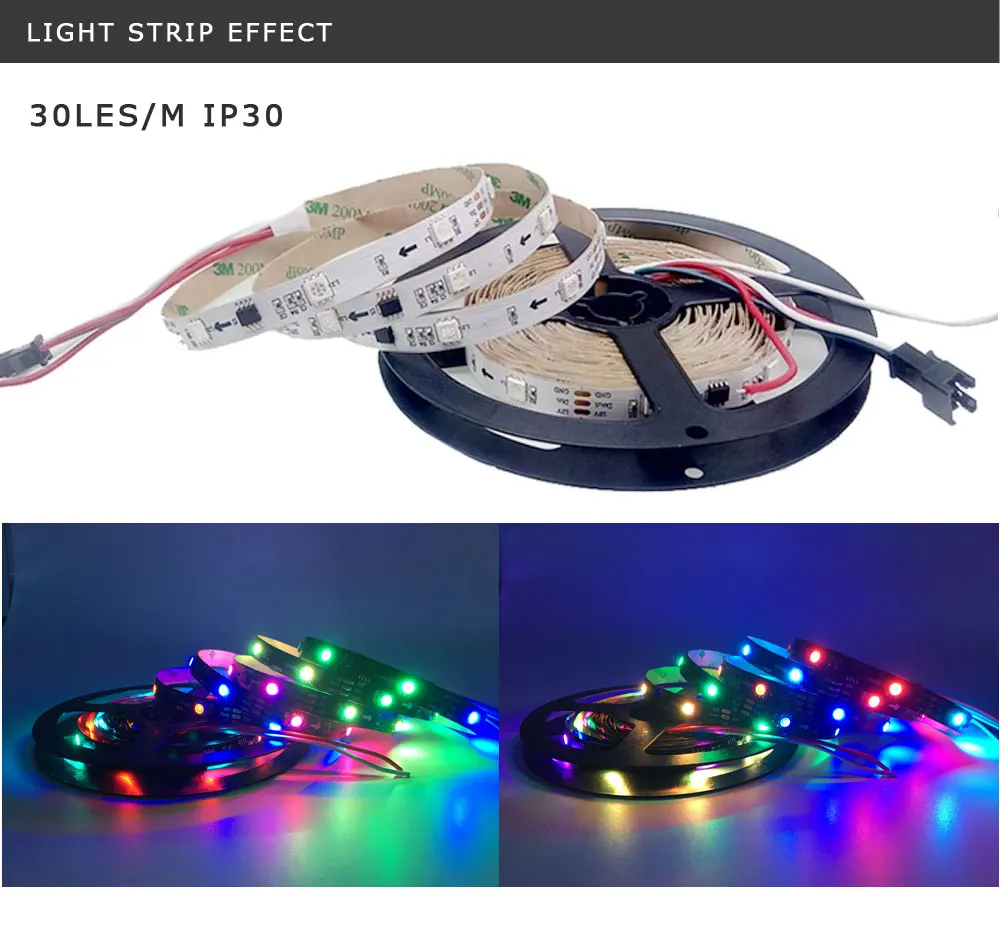 Цветовое освещение мечты, контроллер комбинированного использования может отображать красочную занавеску/поток воды/каплю дождя/вспышку прыжка и т. Д. Сотни световых эффектов.