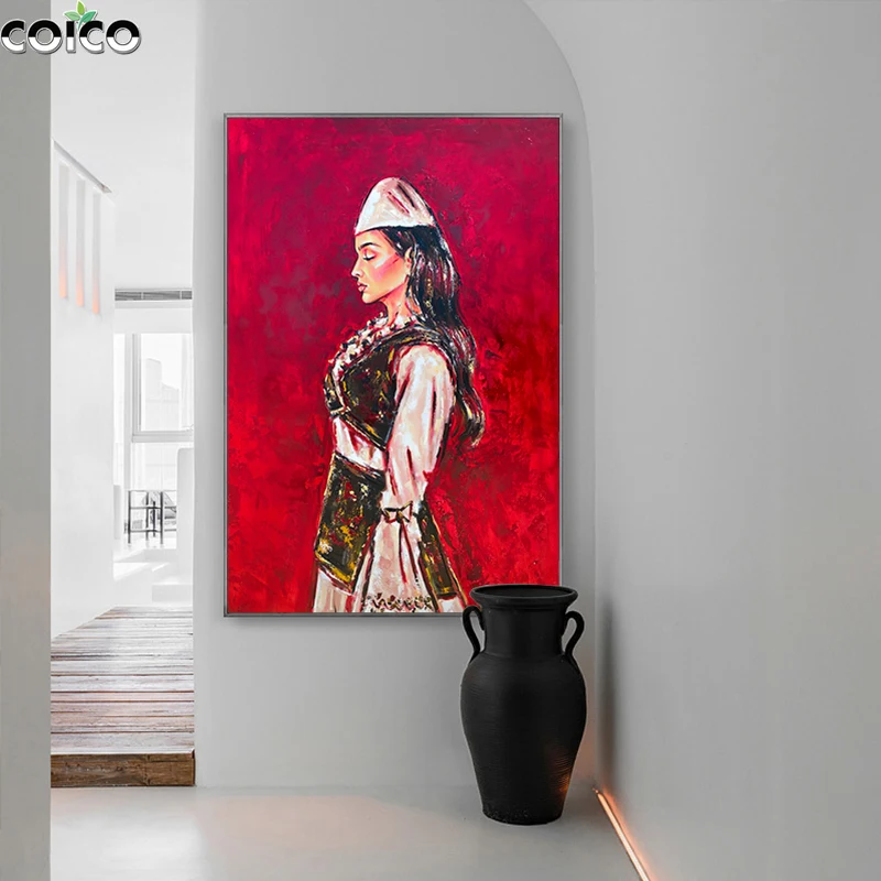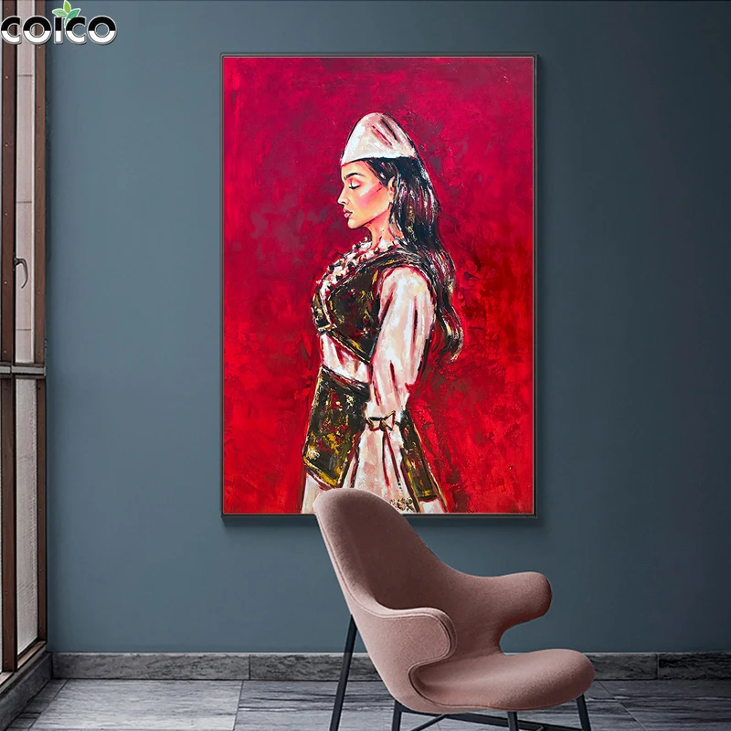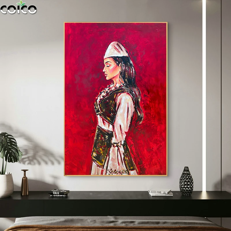Настенная Картина на холсте с рамкой, красный постер албанской женщины, ручная картина маслом, современная Печать, мебель, домашний декор для гостиной