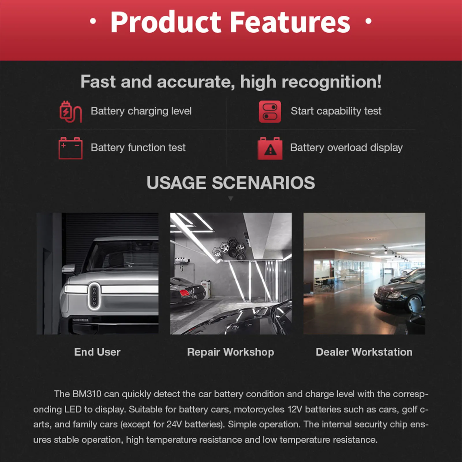 BM310 автомобиля Батарея Тесты er Зарядное устройство анализатор 12V Напряжение Батарея Тесты светодиодный Дисплей Авто Батарея поддерживать ящик для инструментов