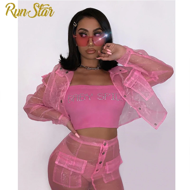RunStar для женщин; Комплект из 2 предметов; Летние прозрачные верхняя одежда с отложным воротником, на пуговицах; Верхняя и мини-юбка, комплект ночного вечерние клубная одежда