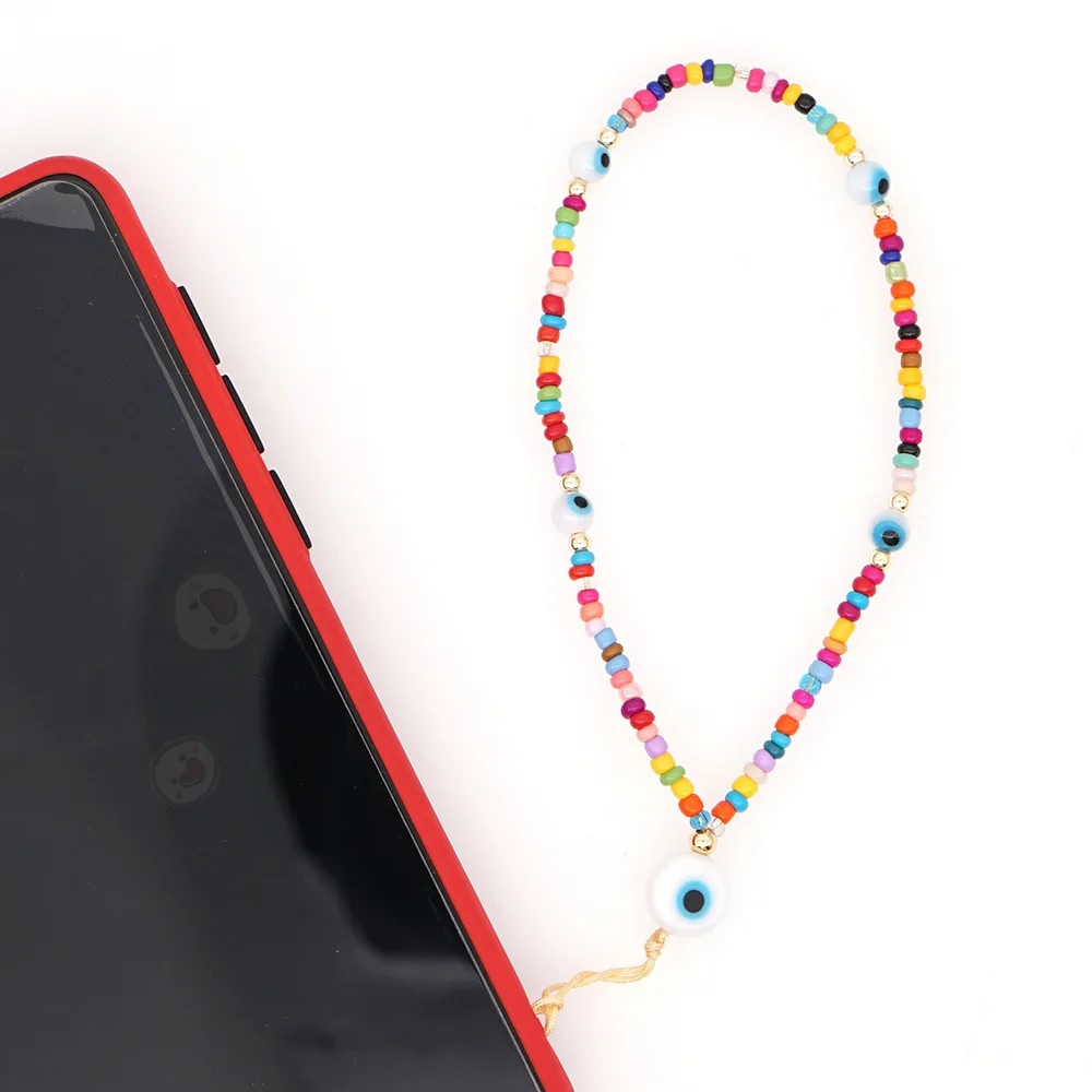 Boho Красочные Мобильный телефон ремни Винтаж шнурки Злой Глаз Акриловые бусины ремешок на запястье веревкой Телефон Чехол затягивающей веревочки для женщин